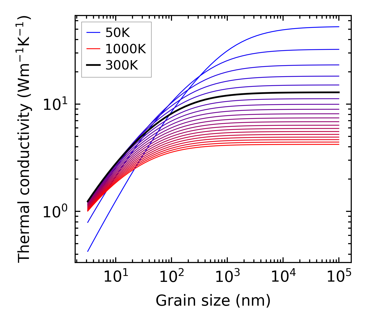 (b) Peierls lattice thermal conductivity w.r.t grain size