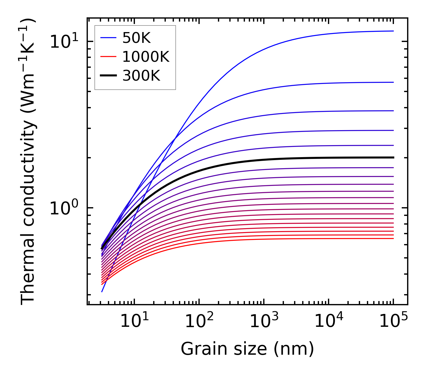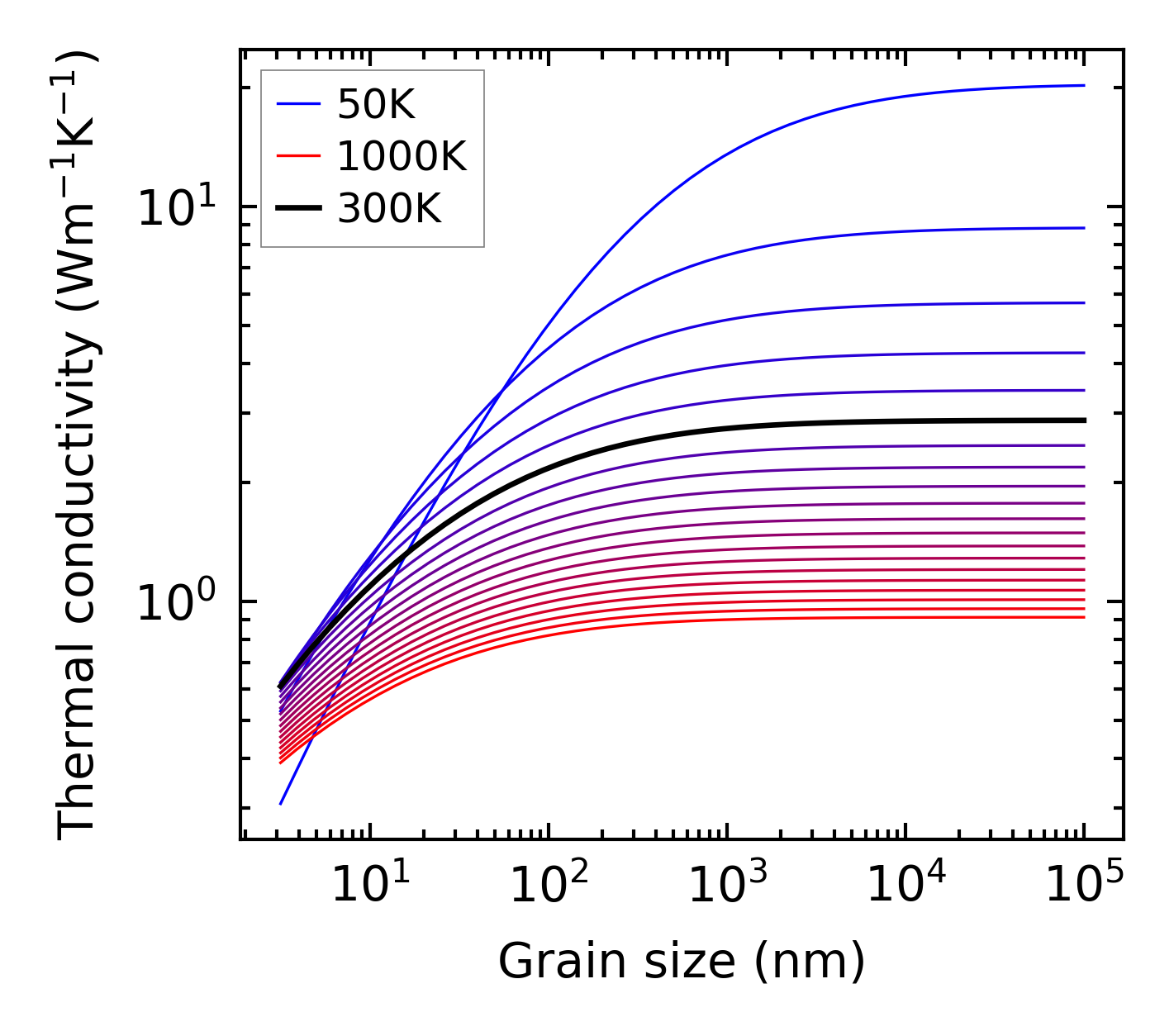 (b) Peierls lattice thermal conductivity w.r.t grain size