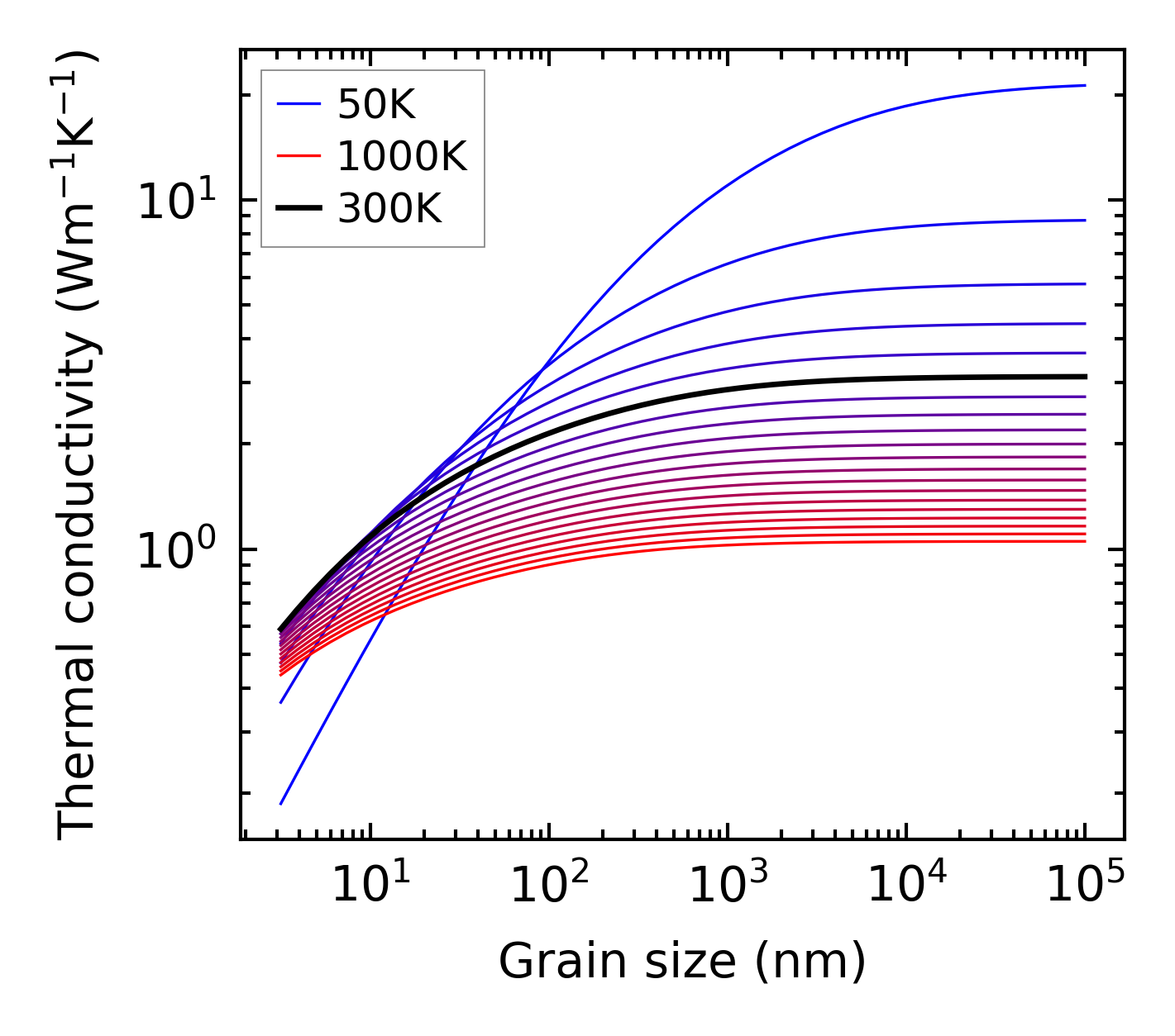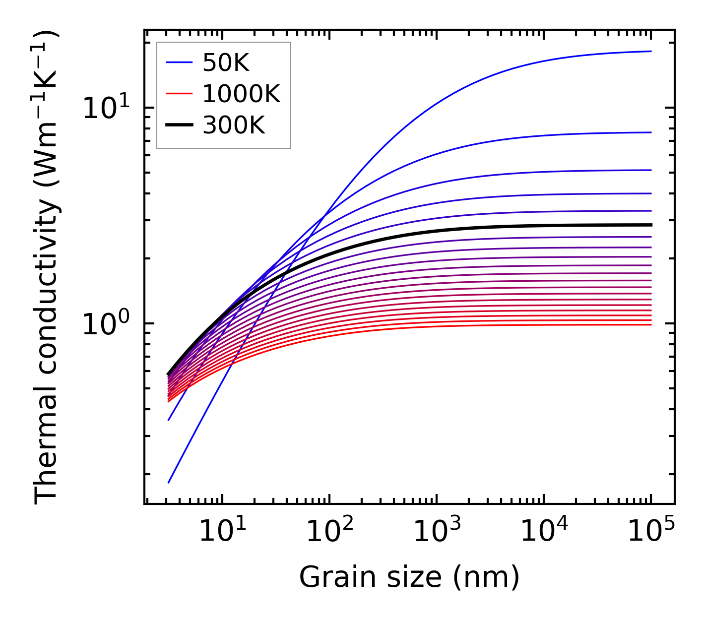 (b) Peierls lattice thermal conductivity w.r.t grain size