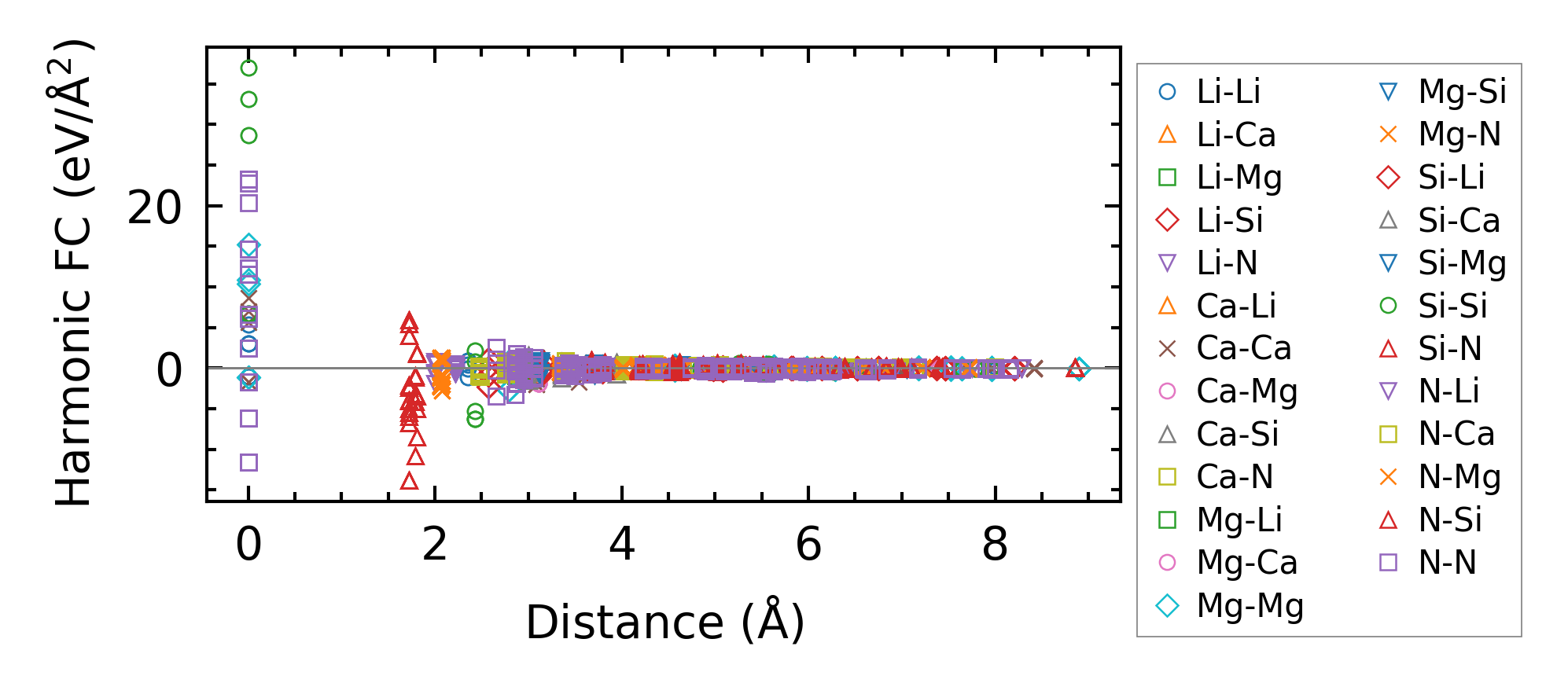 (a) Force constants w.r.t atomic distance