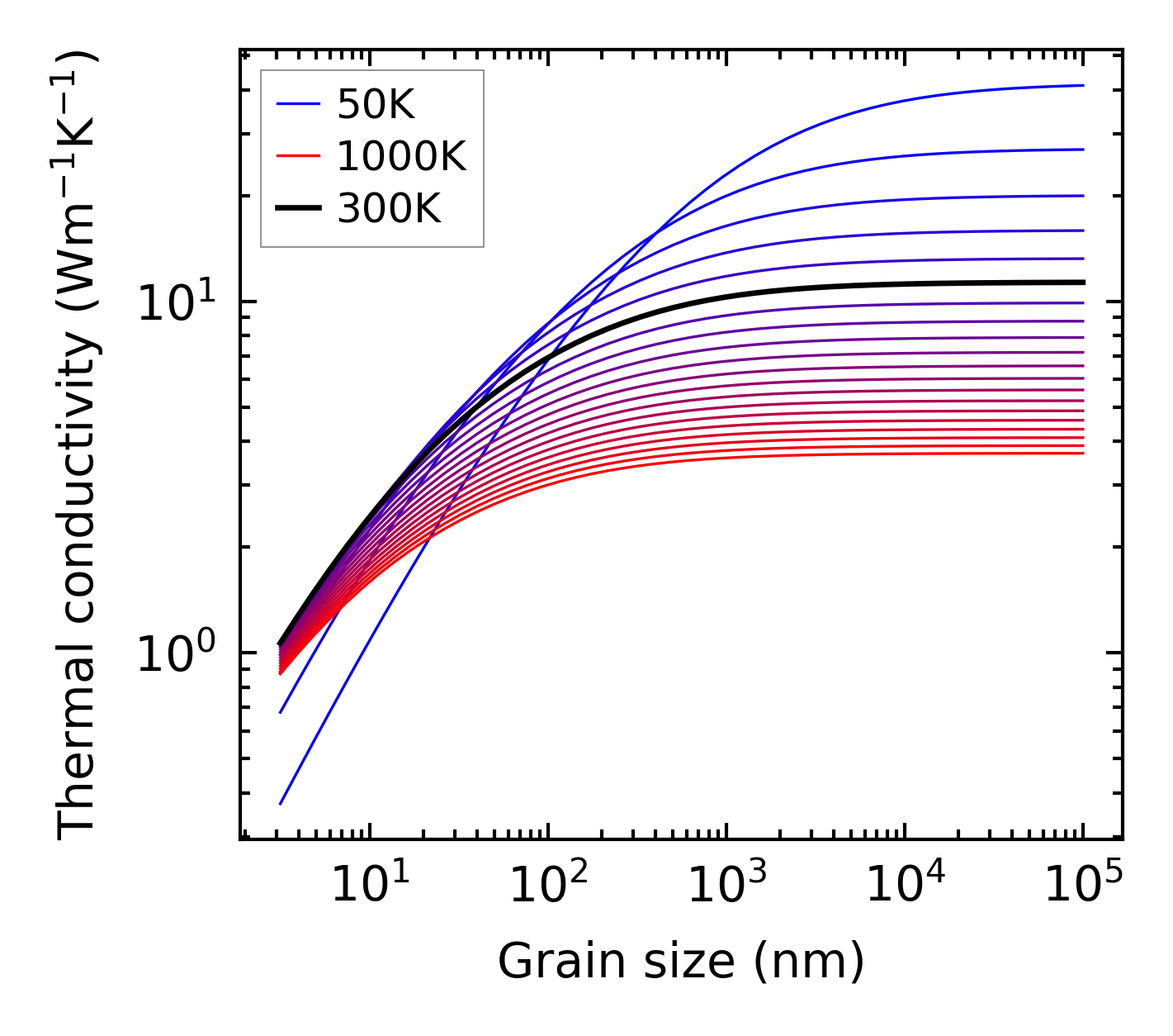 (b) Peierls lattice thermal conductivity w.r.t grain size