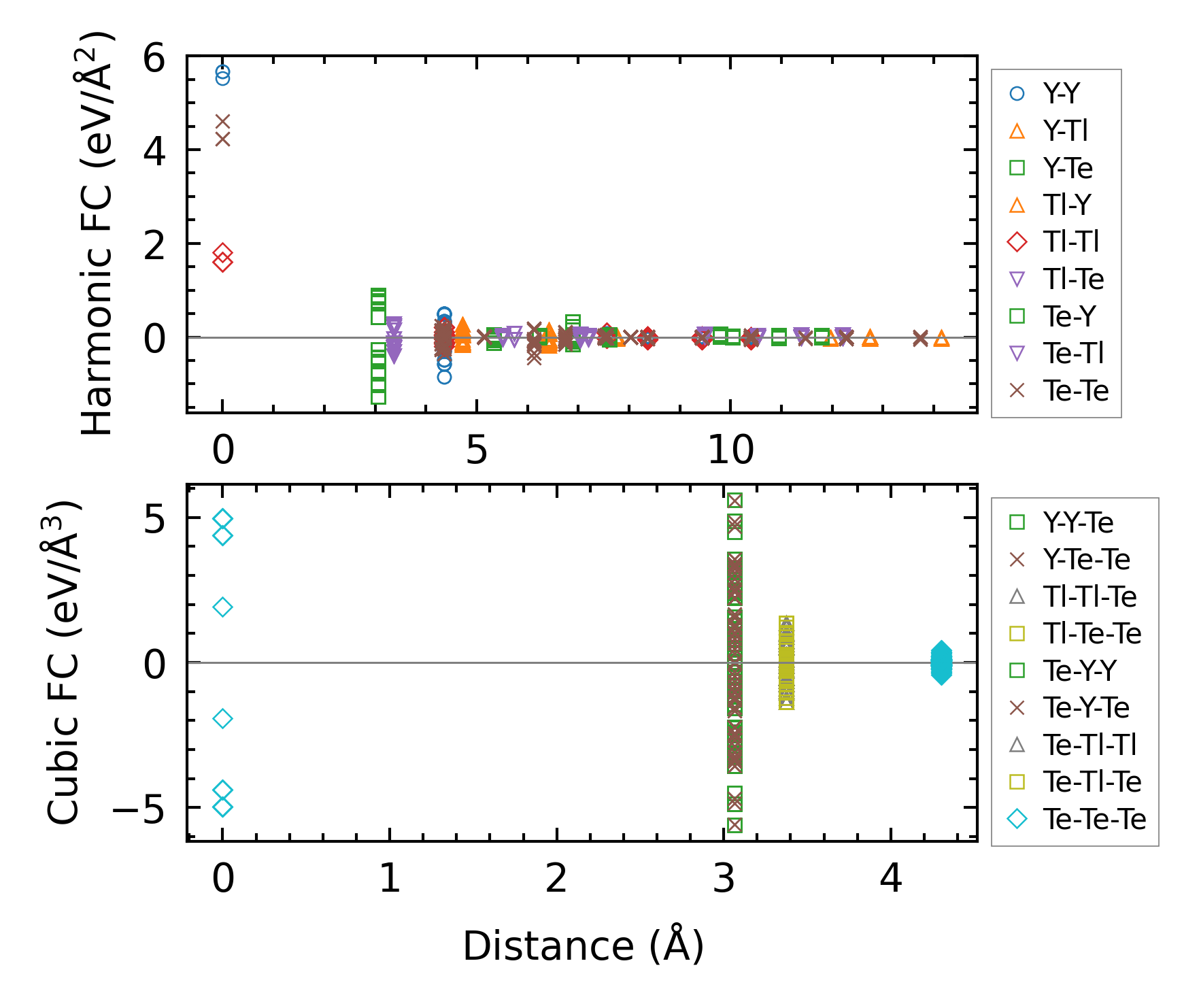 (a) Force constants w.r.t atomic distance