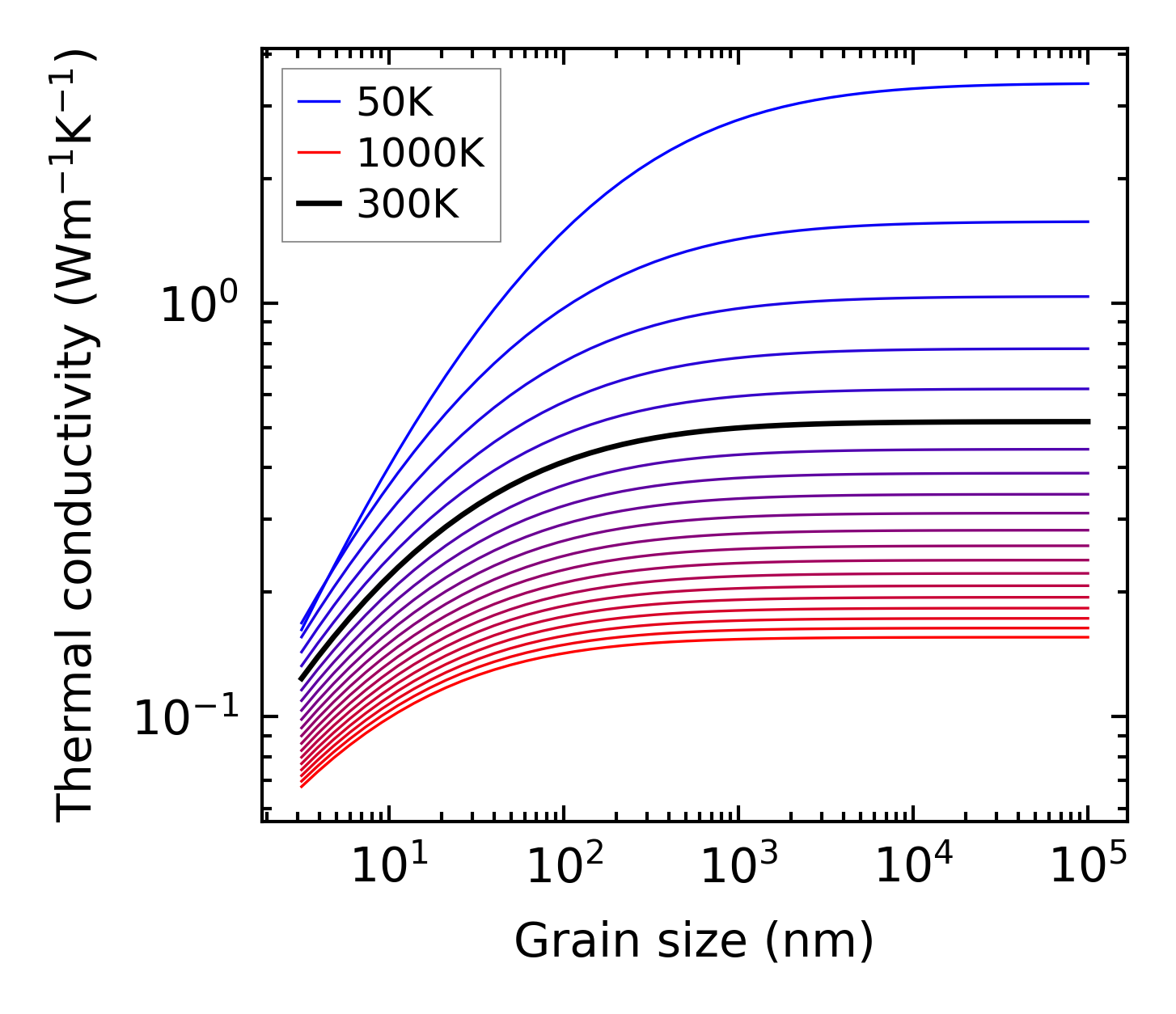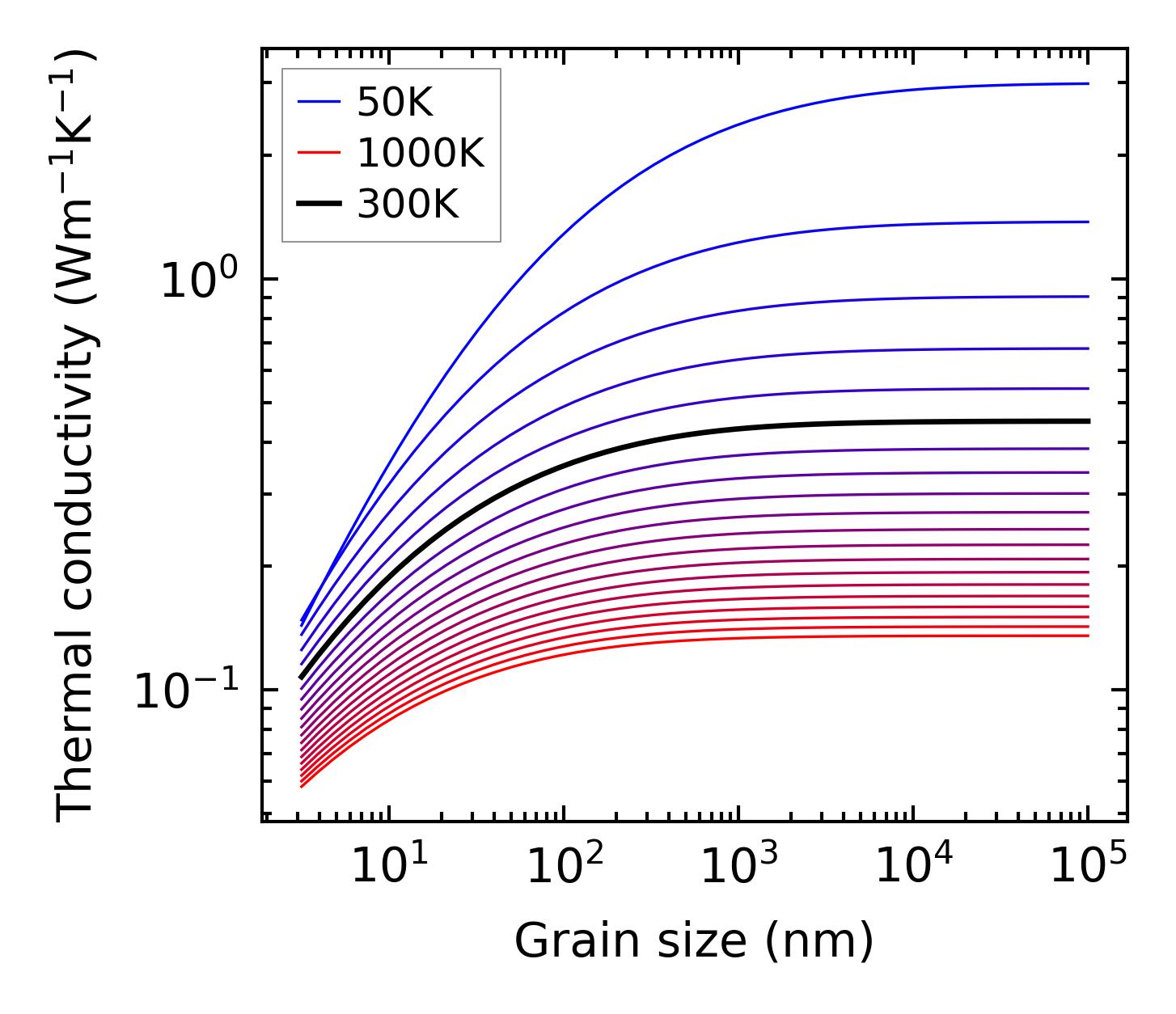 (b) Peierls lattice thermal conductivity w.r.t grain size