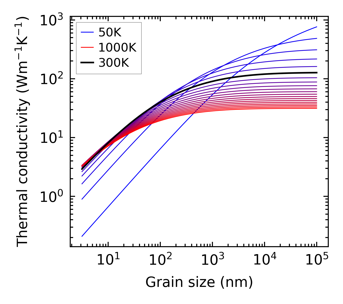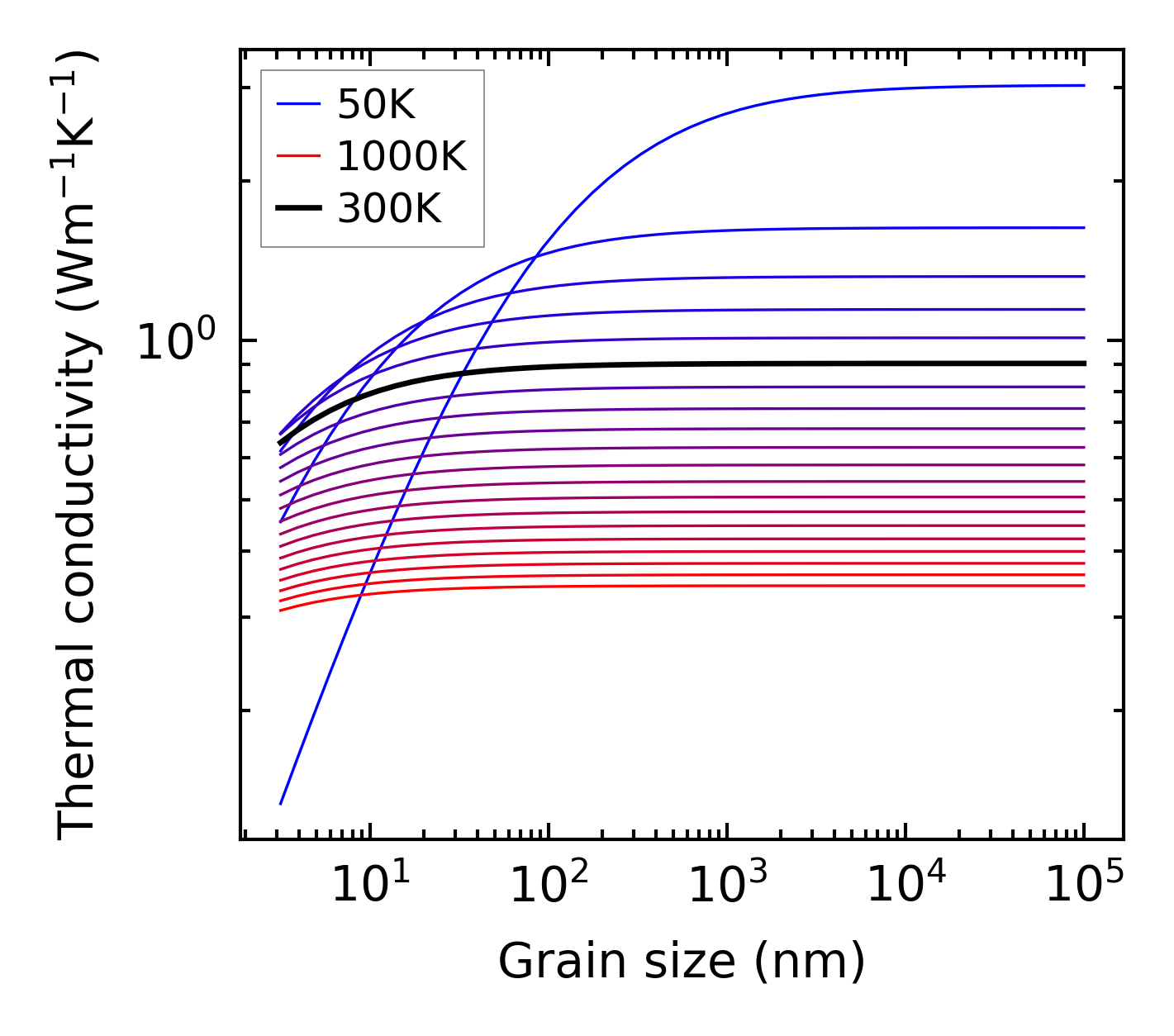 (b) Peierls lattice thermal conductivity w.r.t grain size