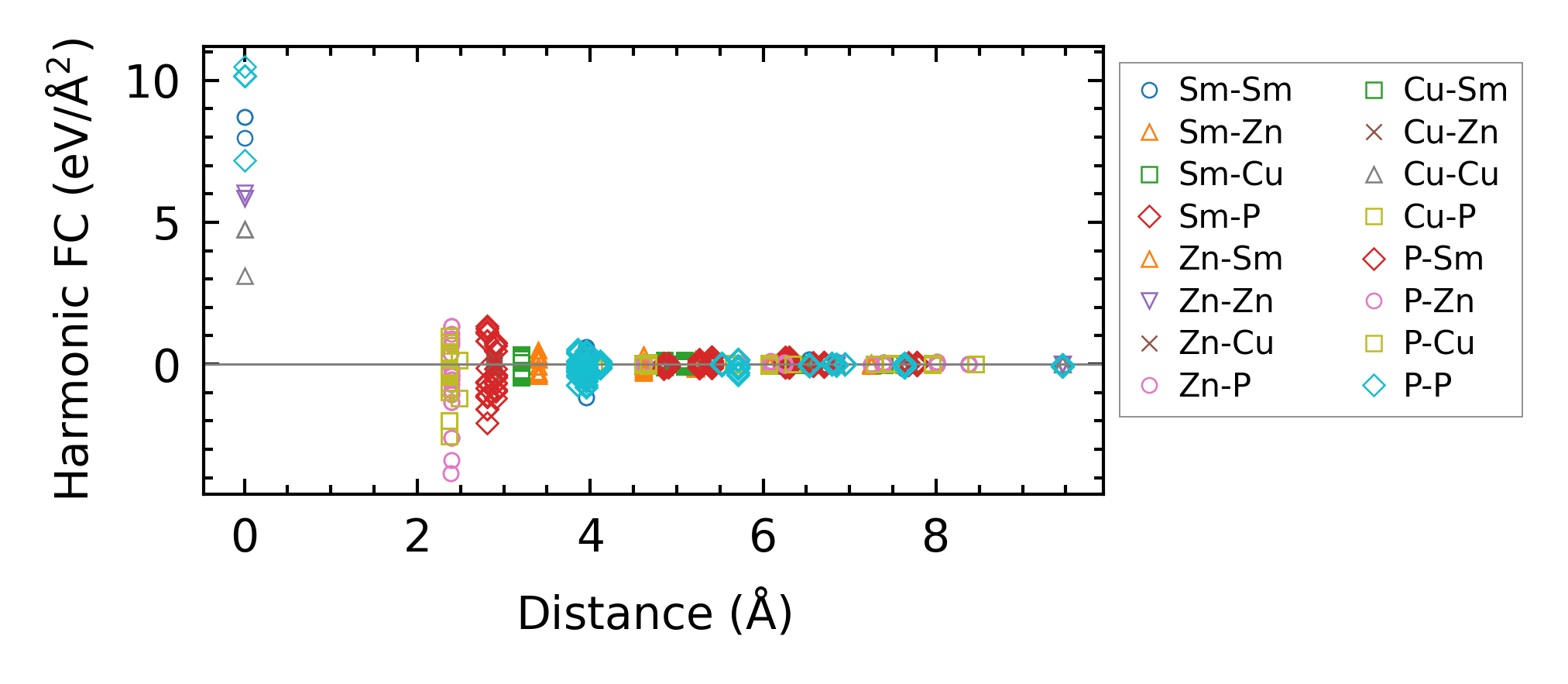 (a) Force constants w.r.t atomic distance