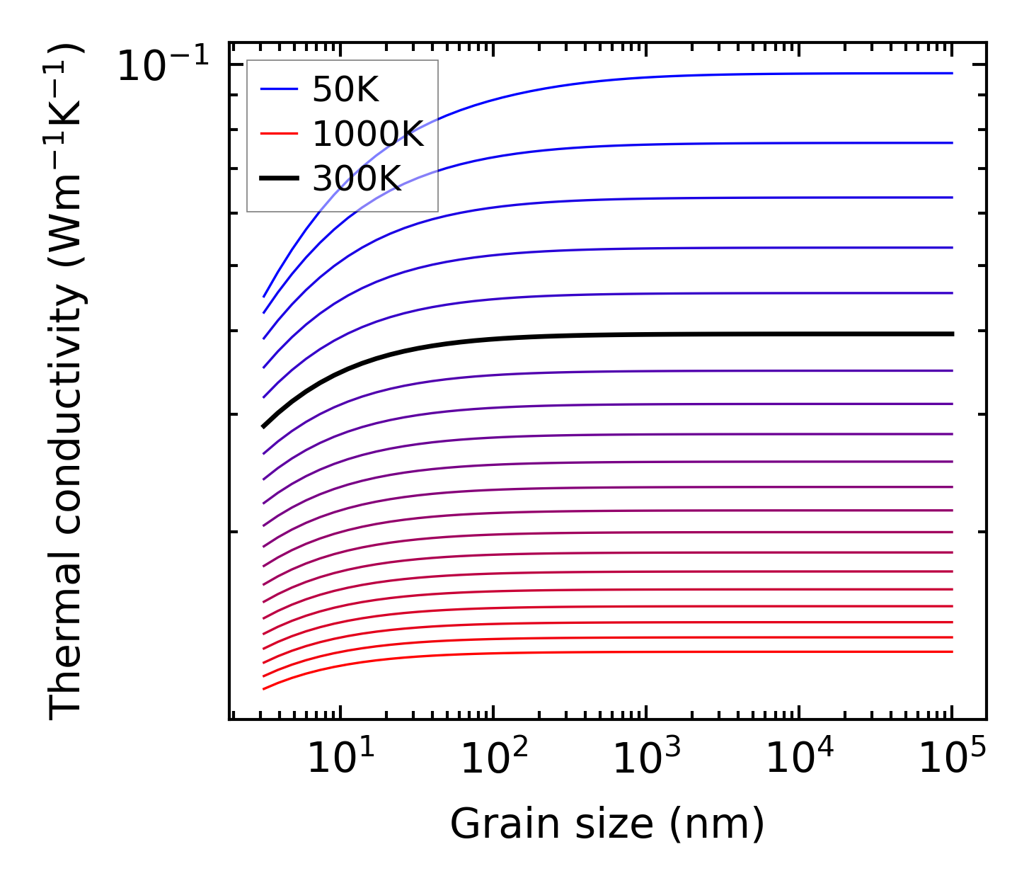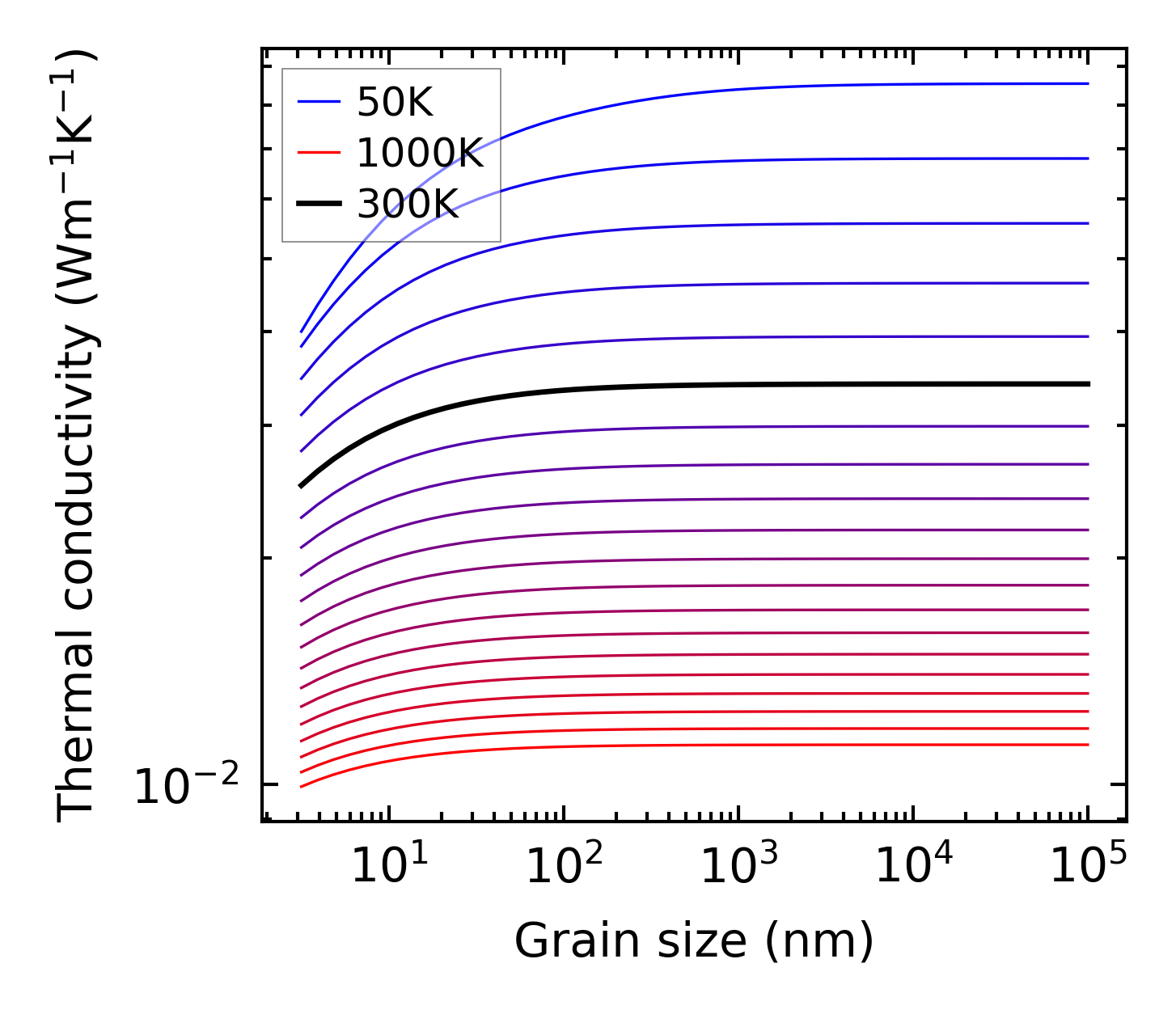 (b) Peierls lattice thermal conductivity w.r.t grain size