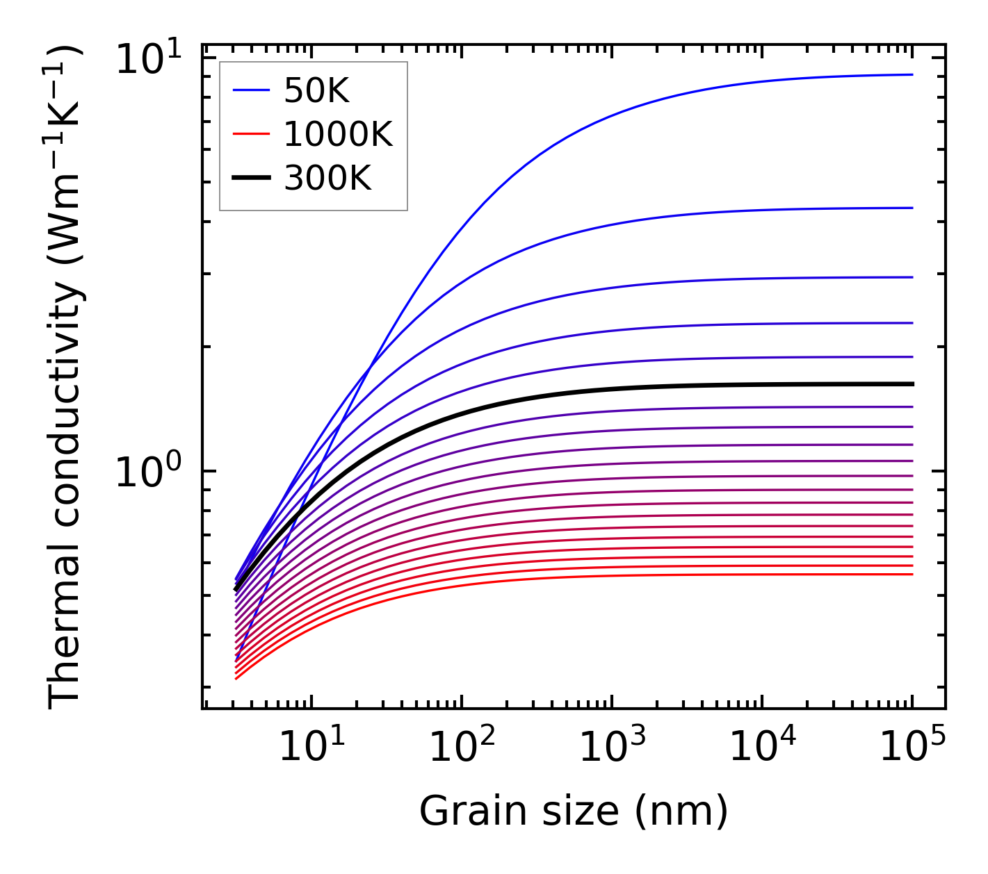(b) Peierls lattice thermal conductivity w.r.t grain size