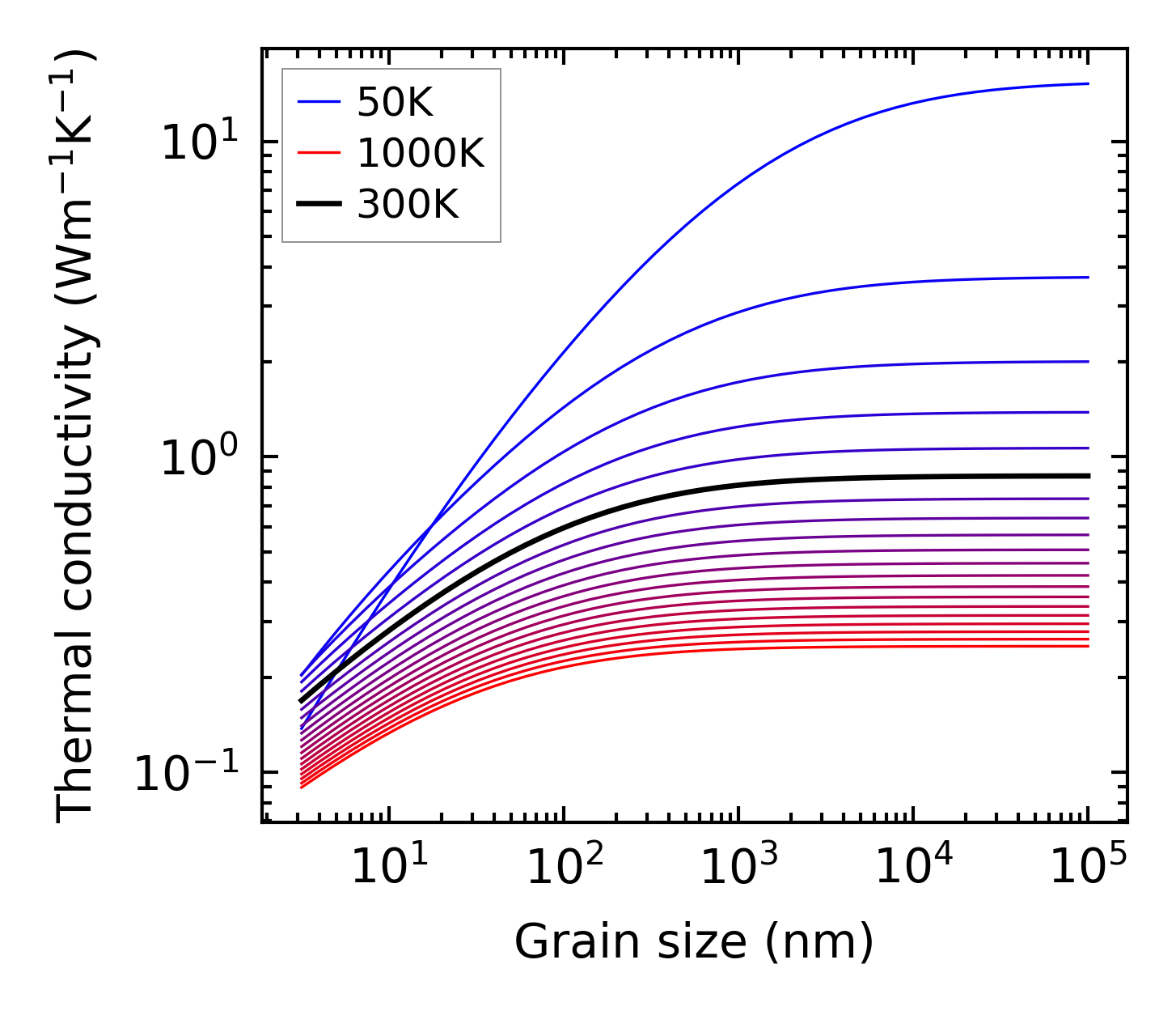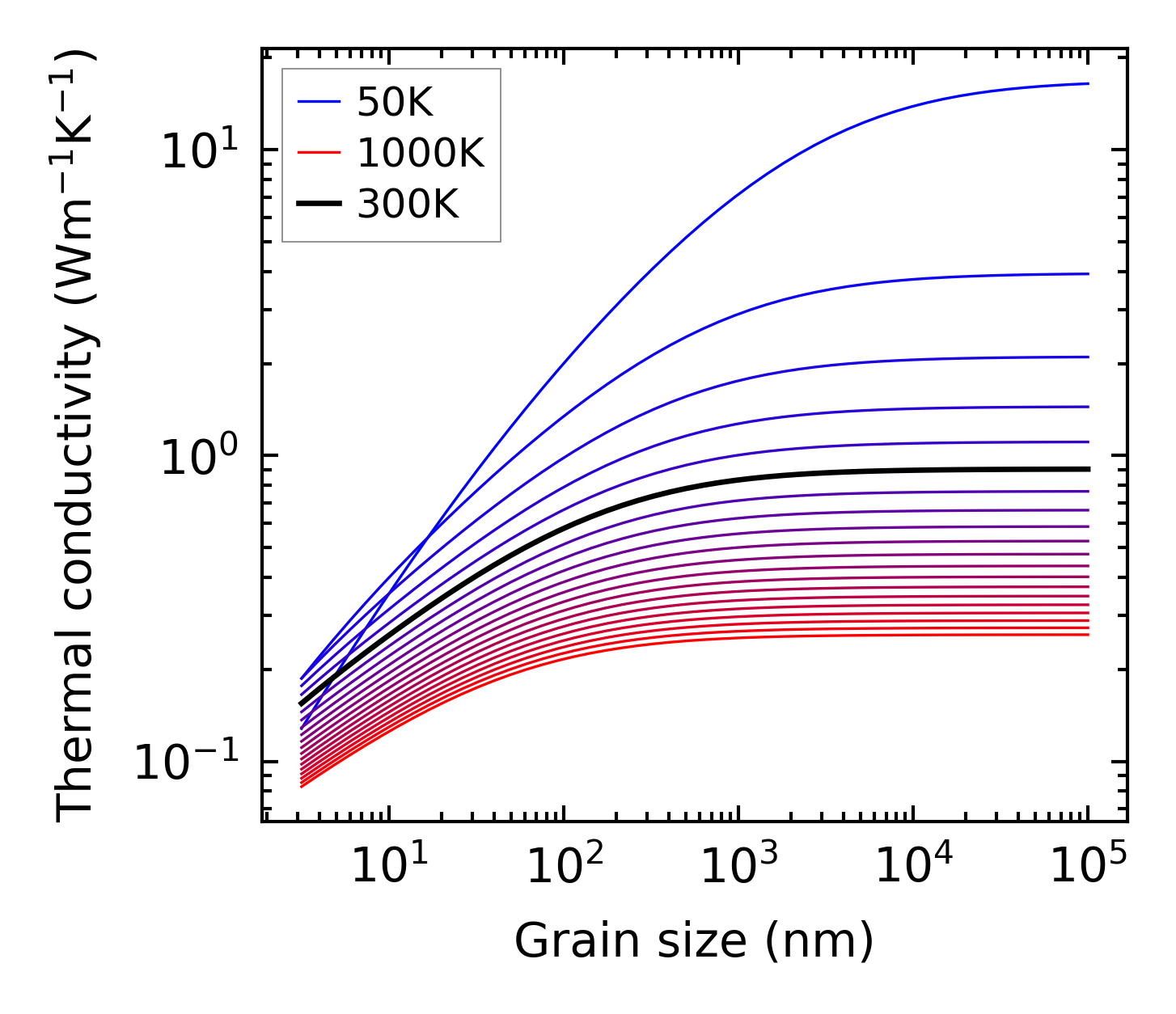 (b) Peierls lattice thermal conductivity w.r.t grain size