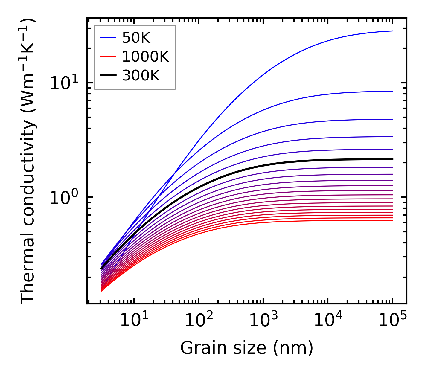 (b) Peierls lattice thermal conductivity w.r.t grain size