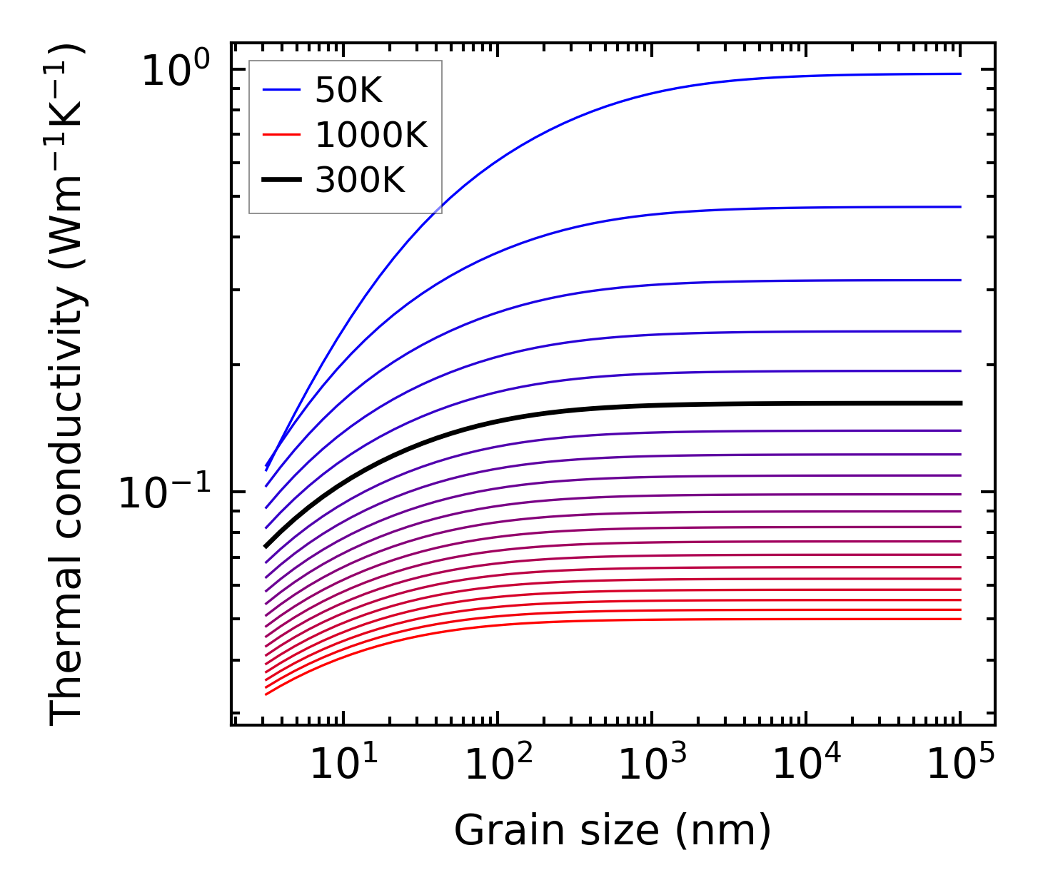 (b) Peierls lattice thermal conductivity w.r.t grain size