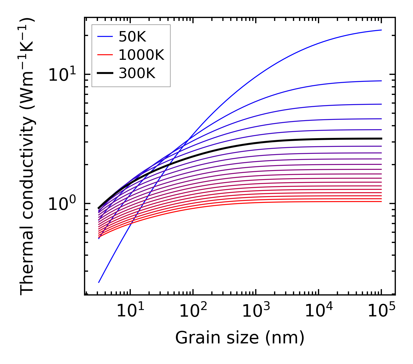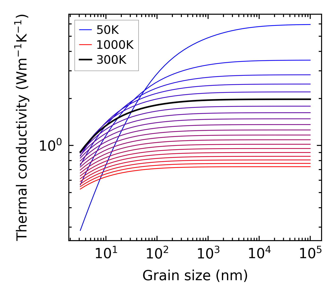(b) Peierls lattice thermal conductivity w.r.t grain size
