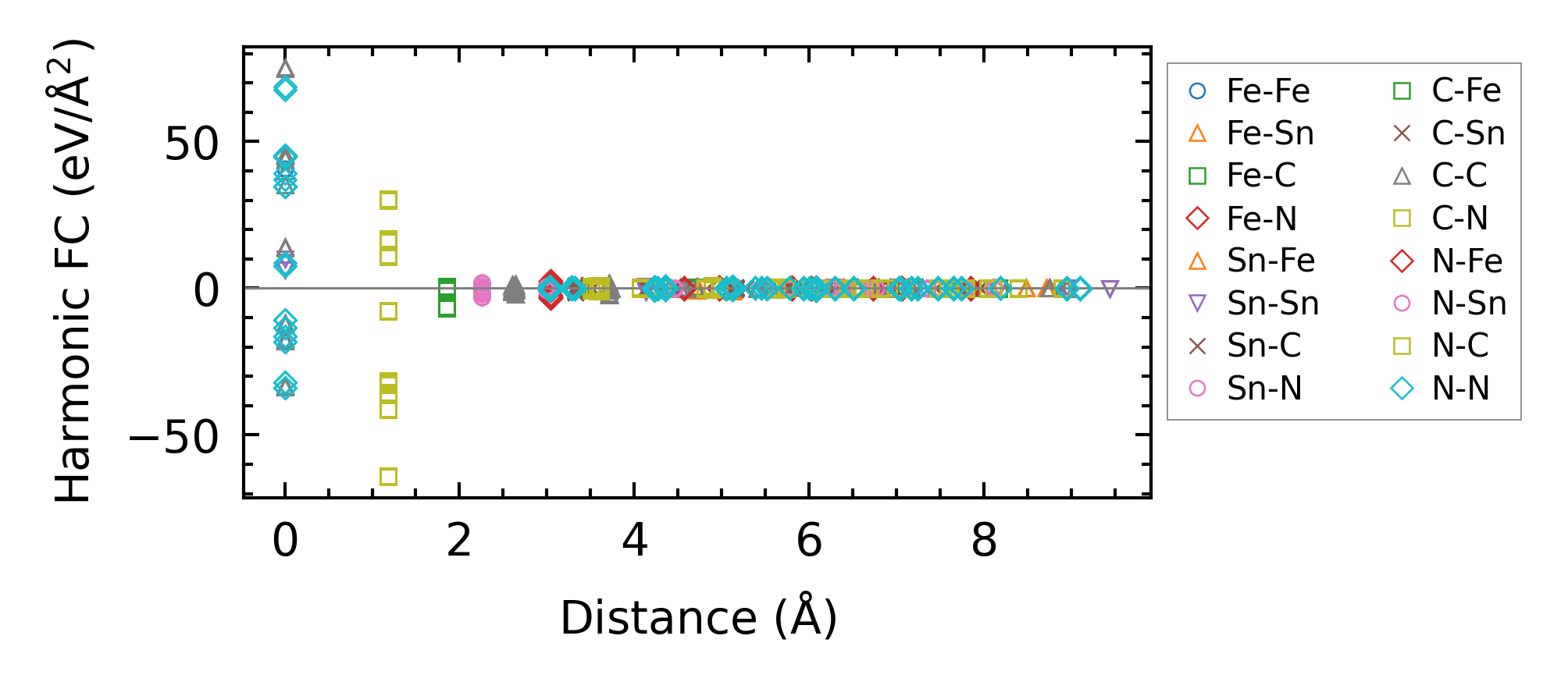 (a) Force constants w.r.t atomic distance