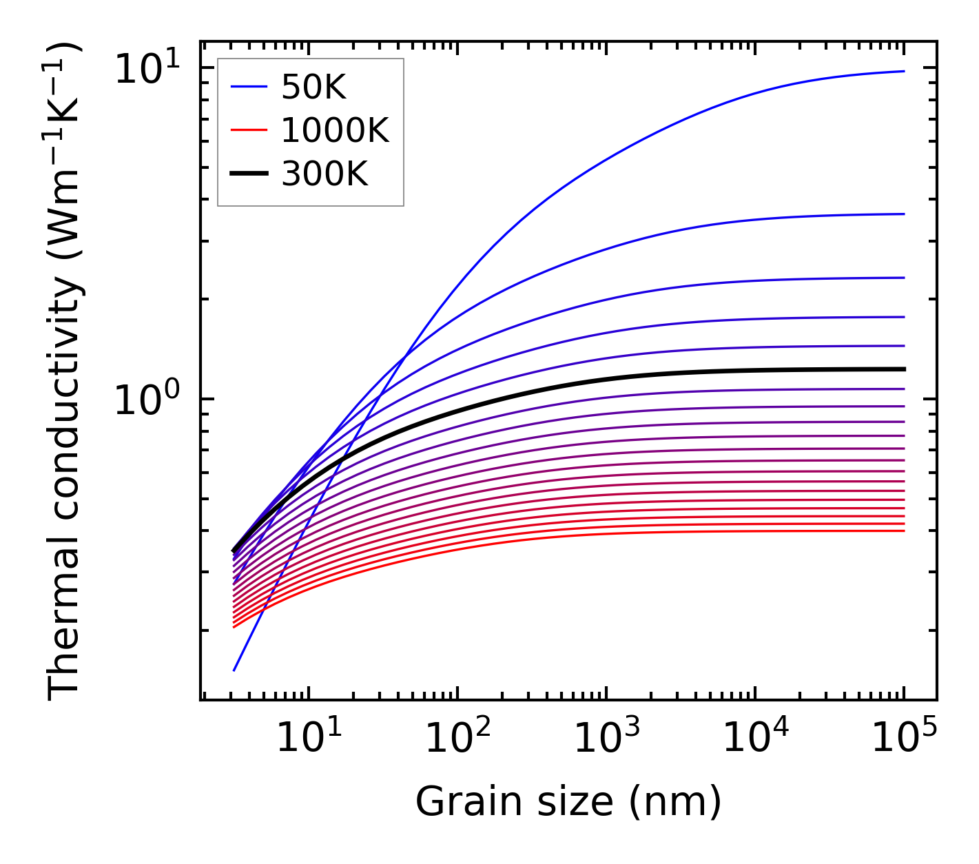 (b) Peierls lattice thermal conductivity w.r.t grain size