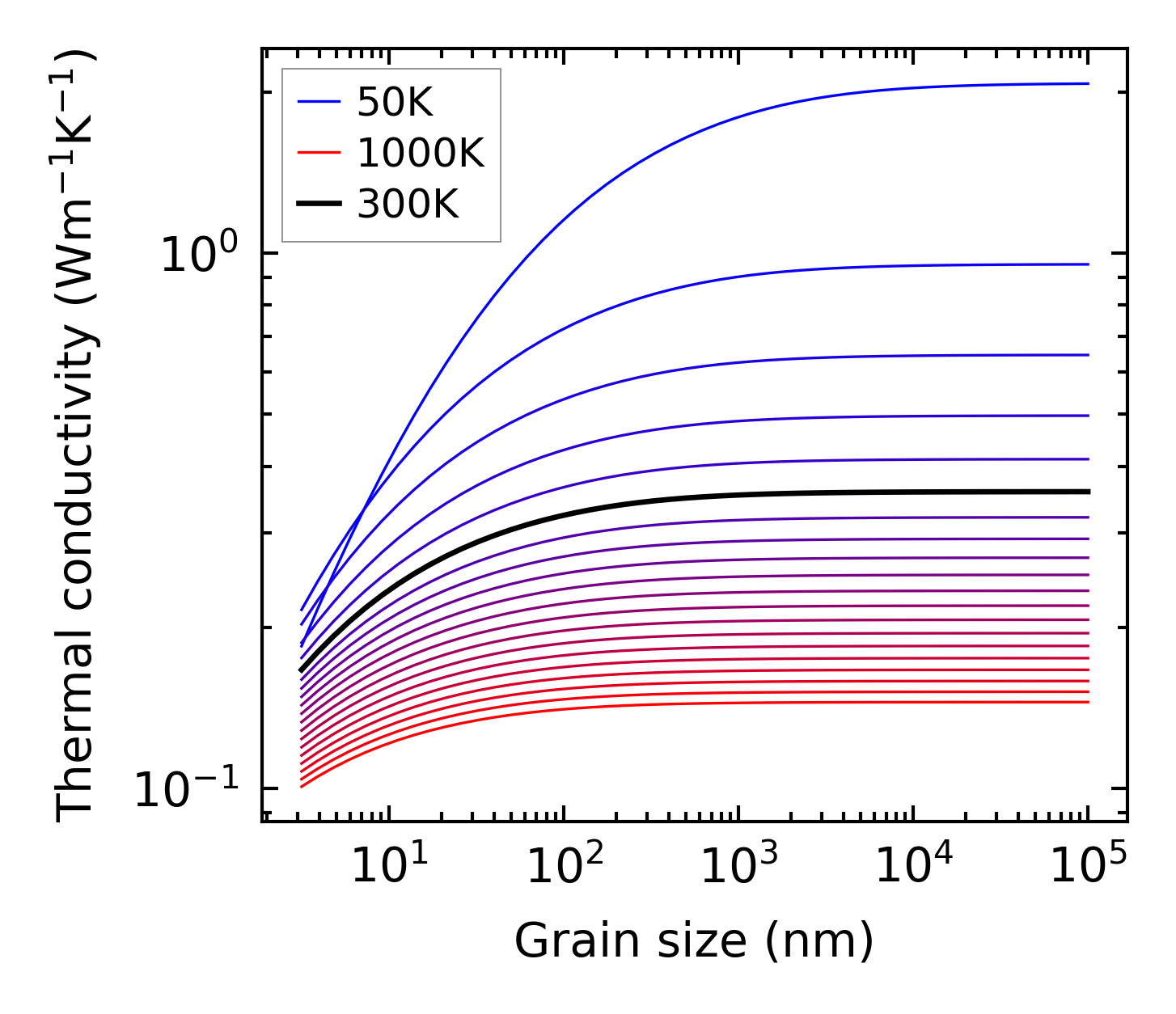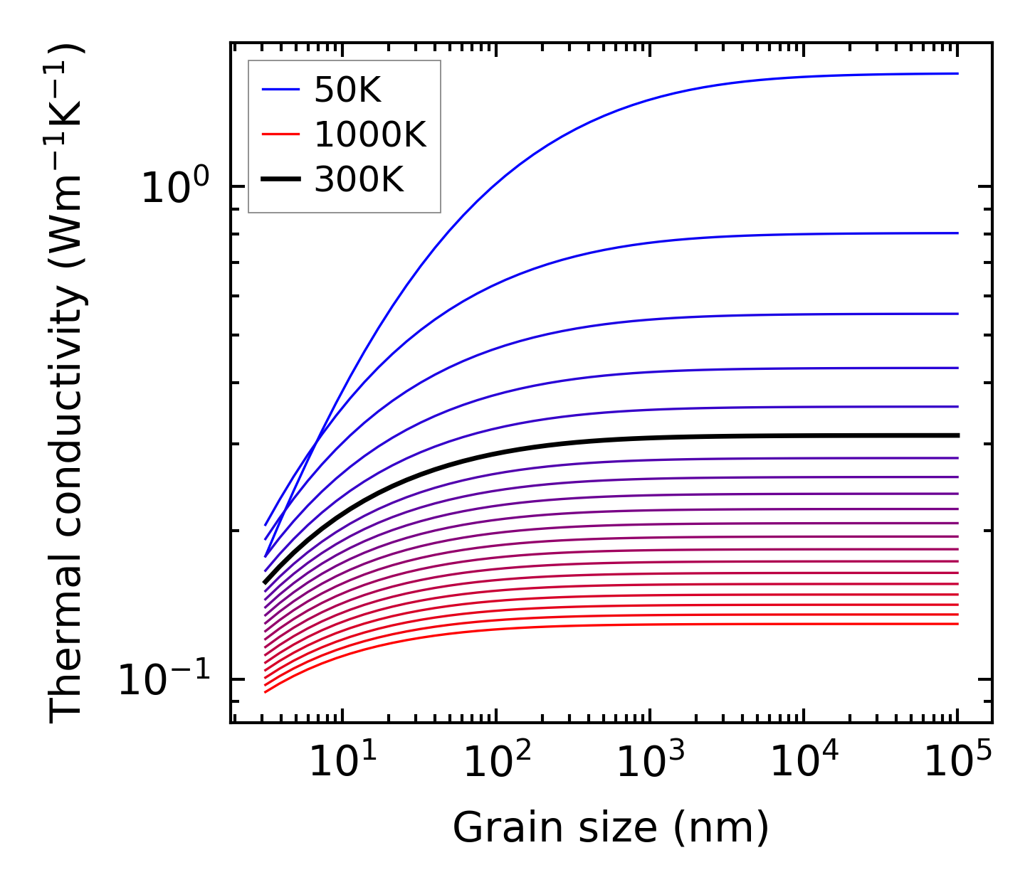 (b) Peierls lattice thermal conductivity w.r.t grain size