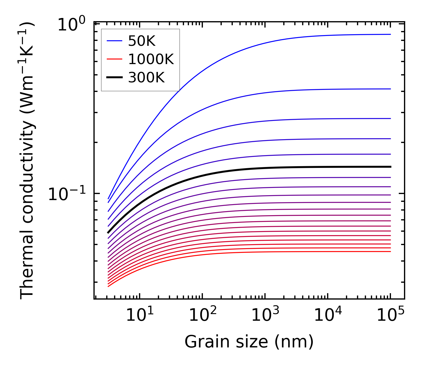 (b) Peierls lattice thermal conductivity w.r.t grain size