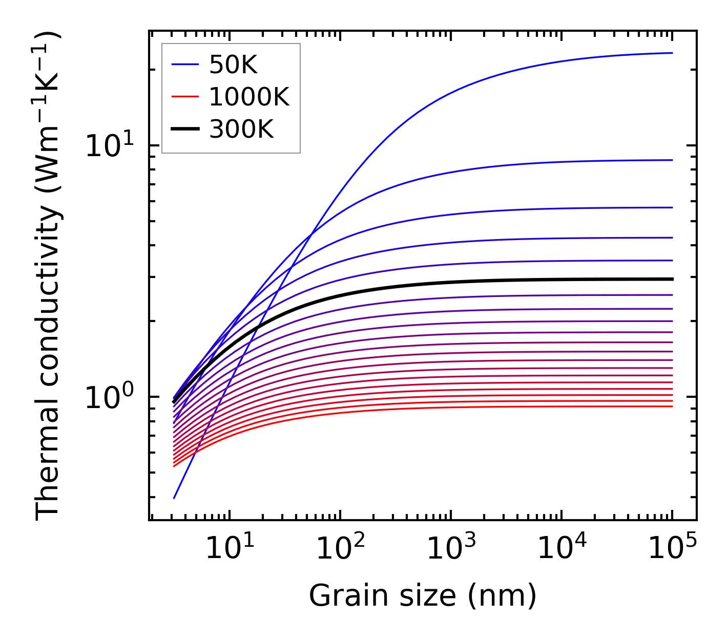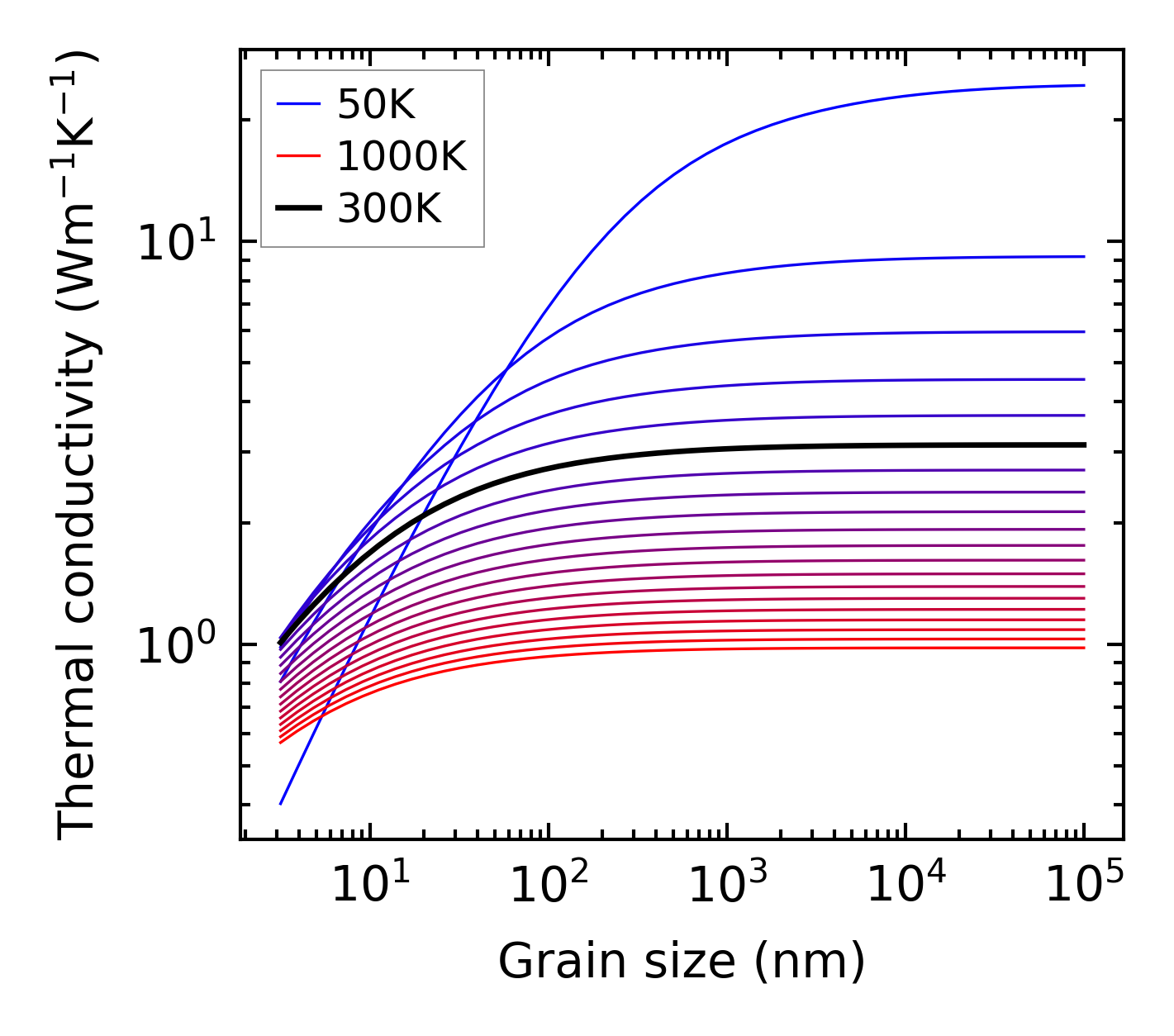 (b) Peierls lattice thermal conductivity w.r.t grain size