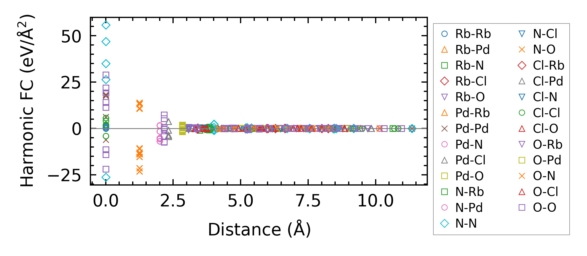 (a) Force constants w.r.t atomic distance
