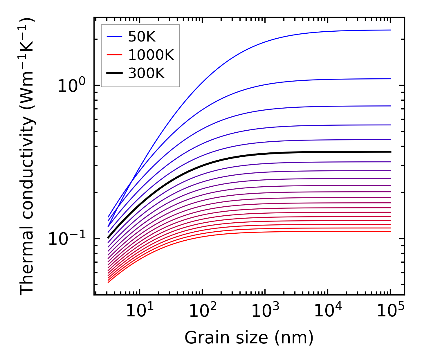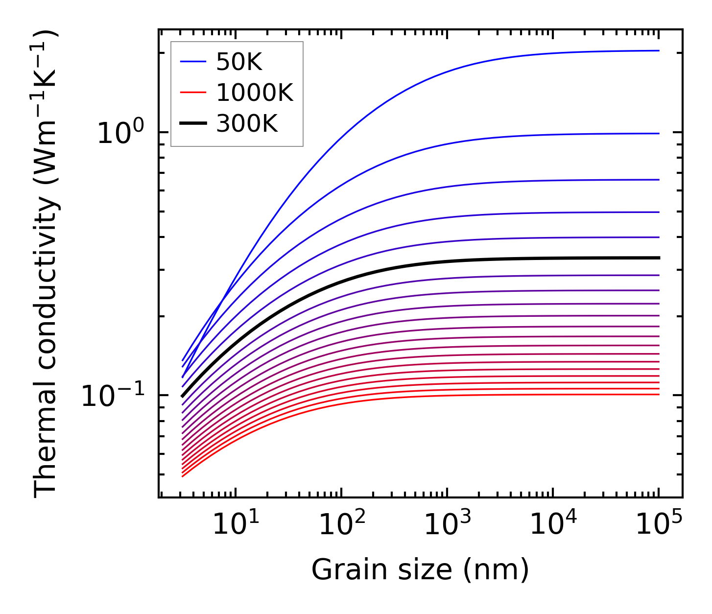 (b) Peierls lattice thermal conductivity w.r.t grain size