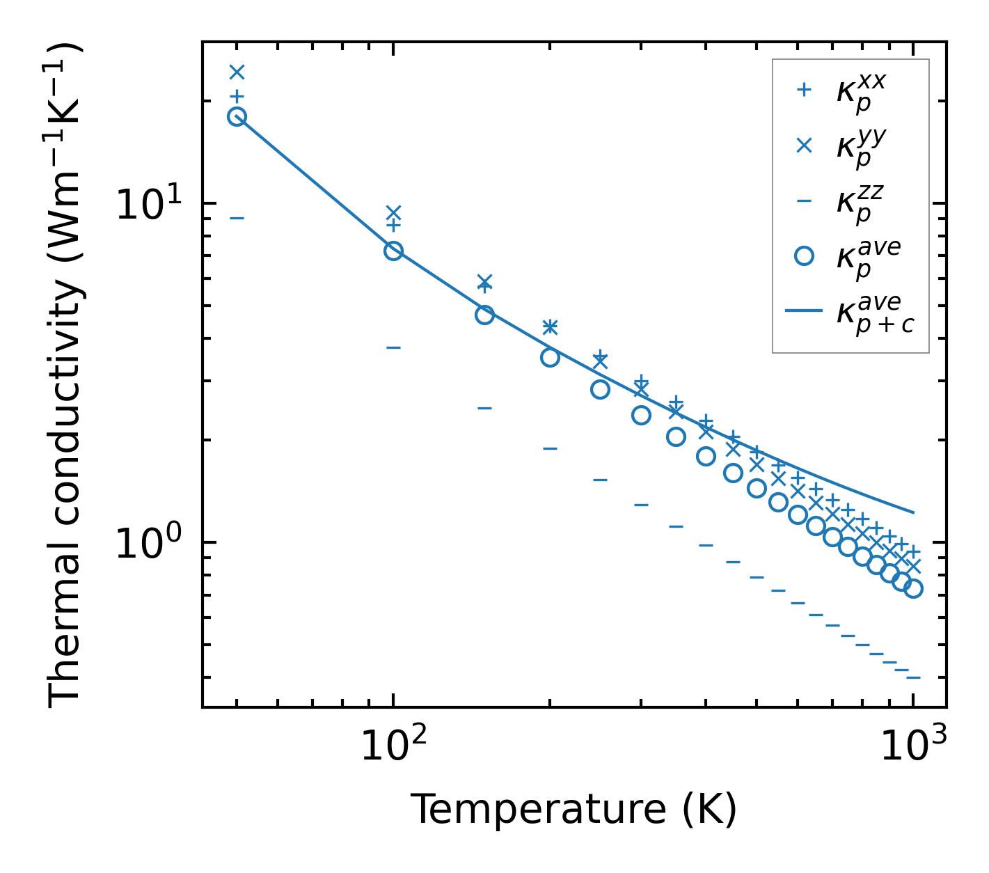 (a) Temperature-dependent lattice thermal conductivity