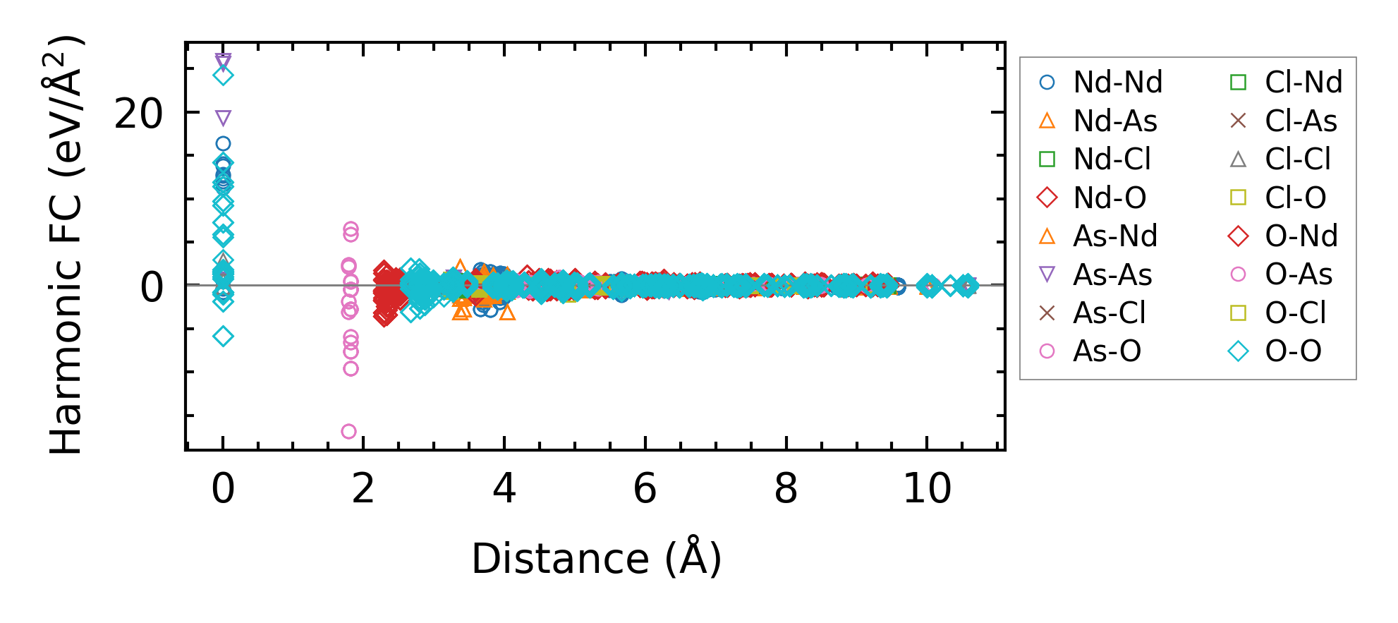 (a) Force constants w.r.t atomic distance