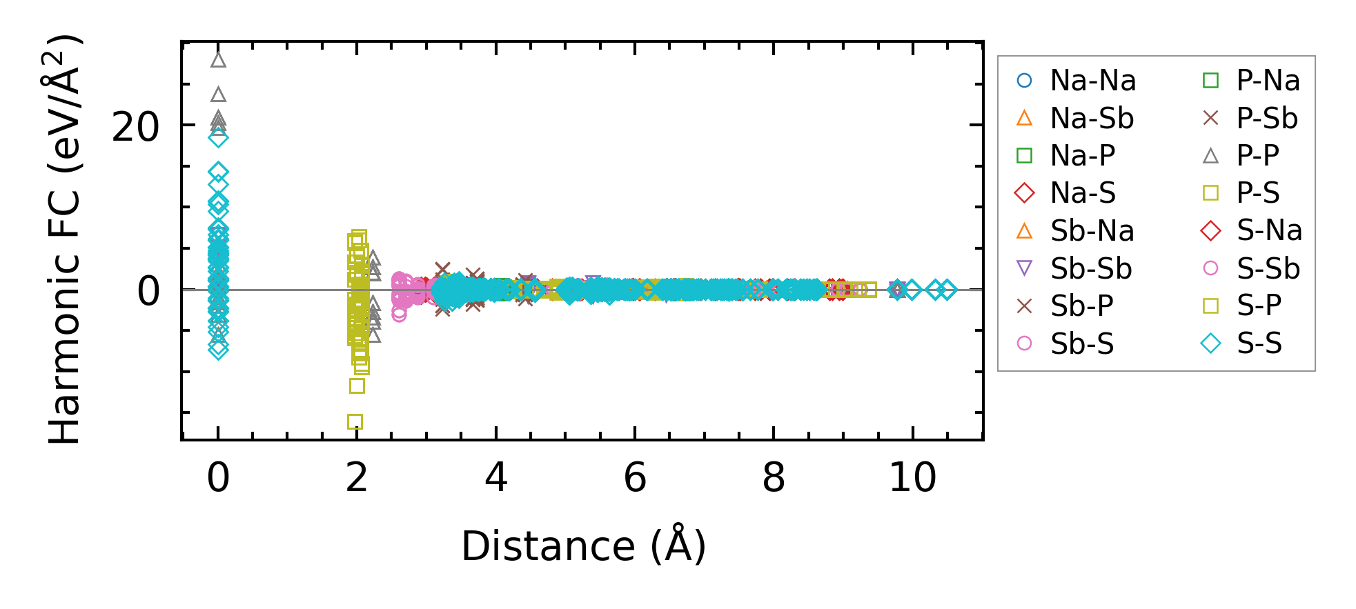(a) Force constants w.r.t atomic distance