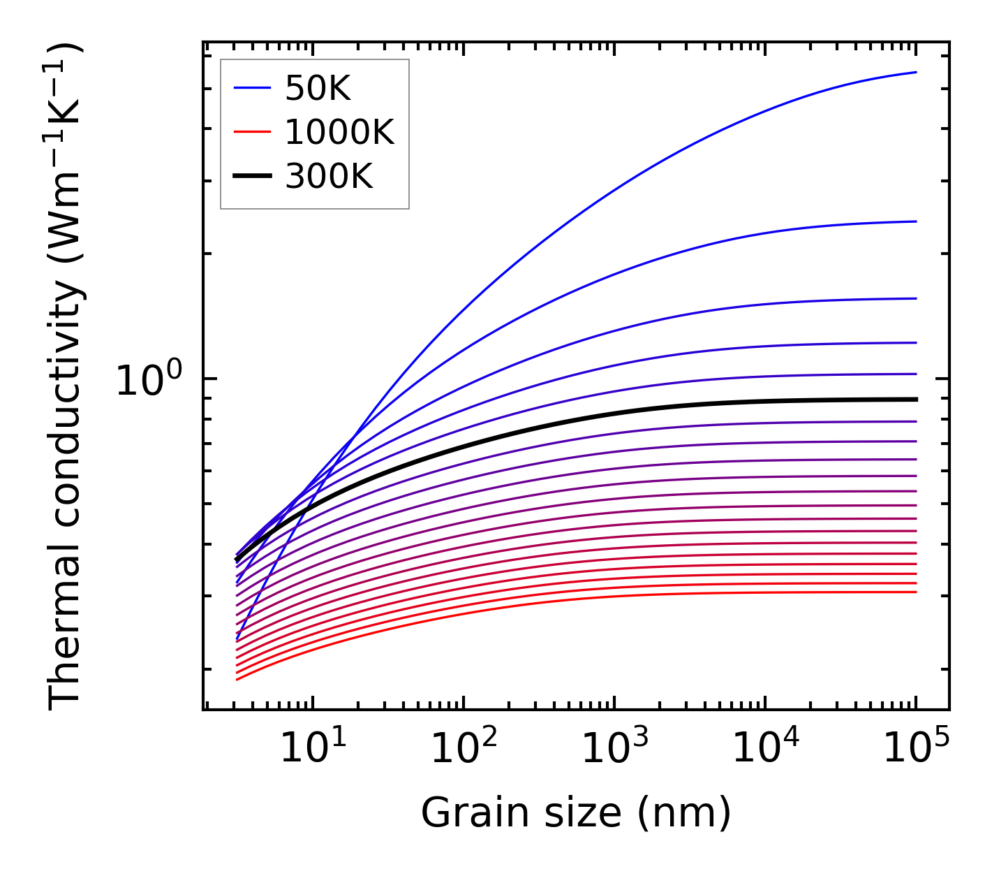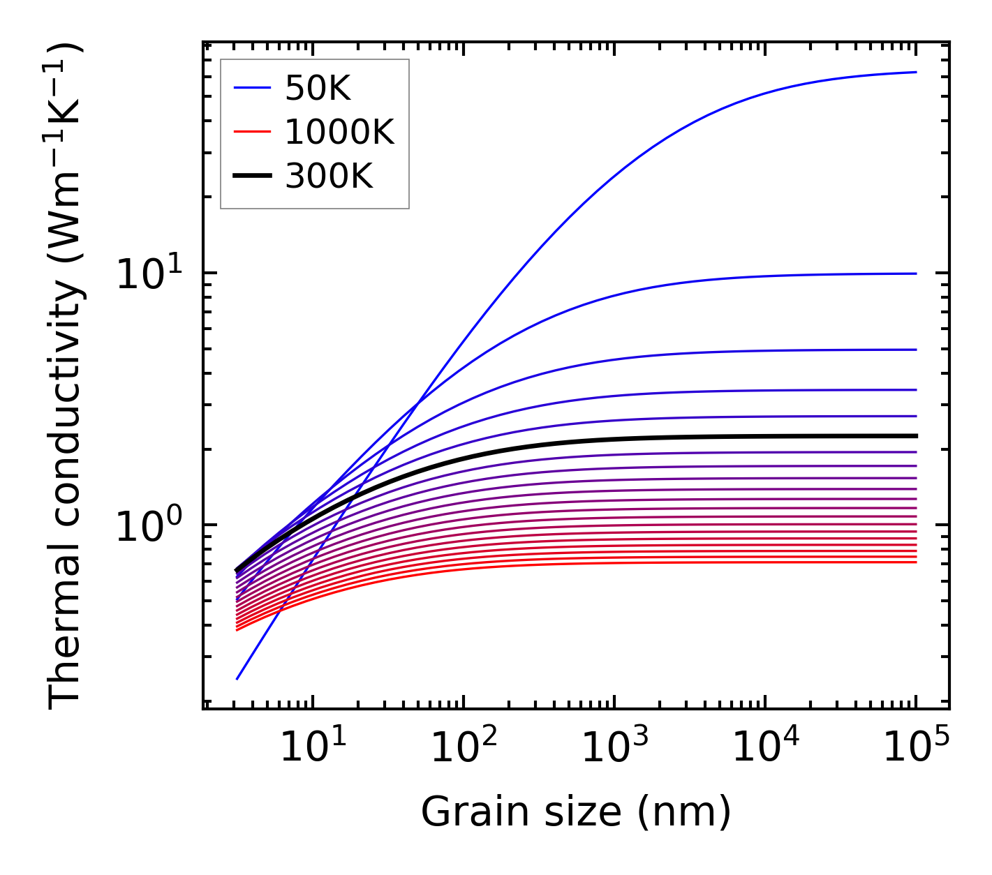 (b) Peierls lattice thermal conductivity w.r.t grain size