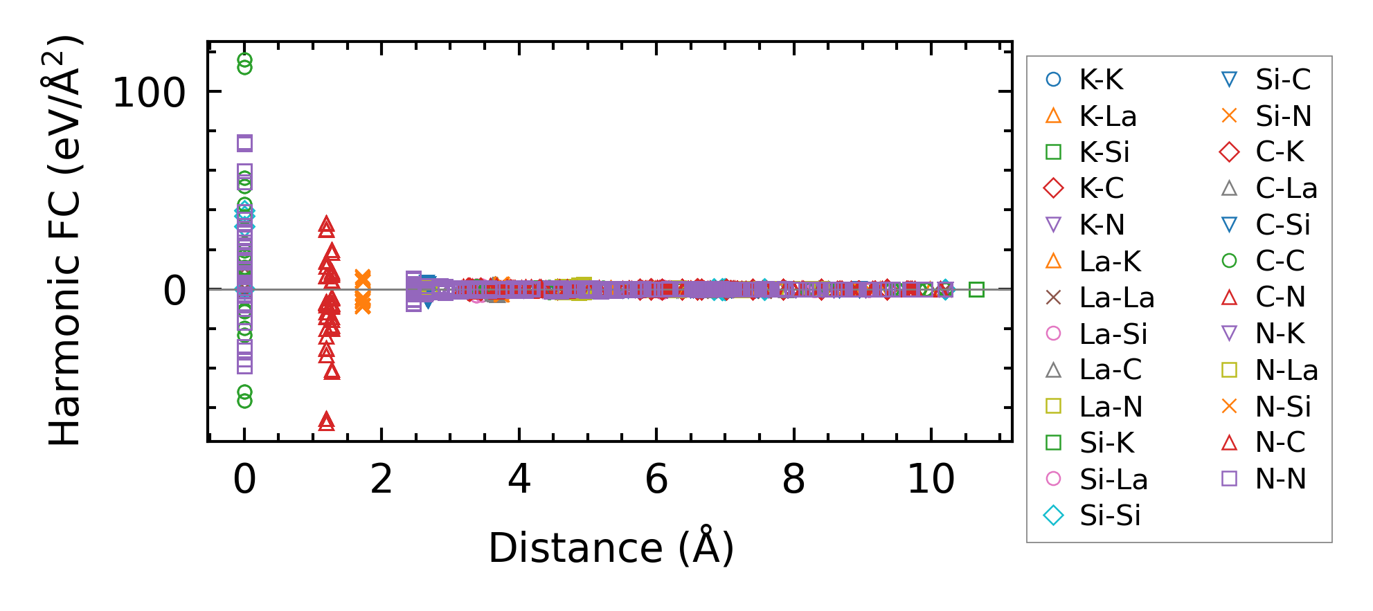 (a) Force constants w.r.t atomic distance