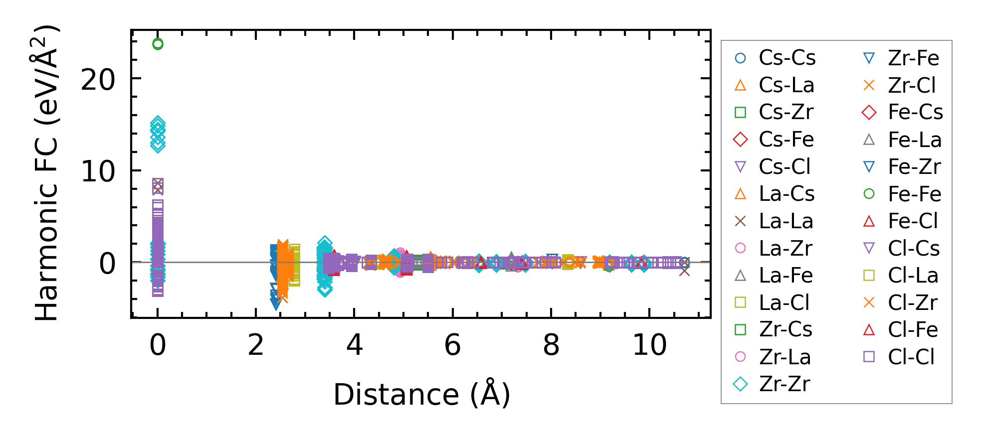 (a) Force constants w.r.t atomic distance