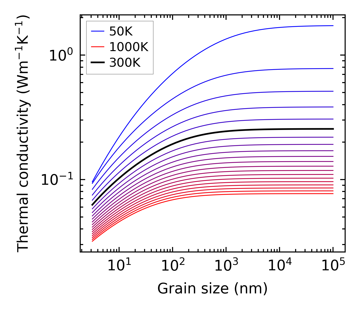 (b) Peierls lattice thermal conductivity w.r.t grain size