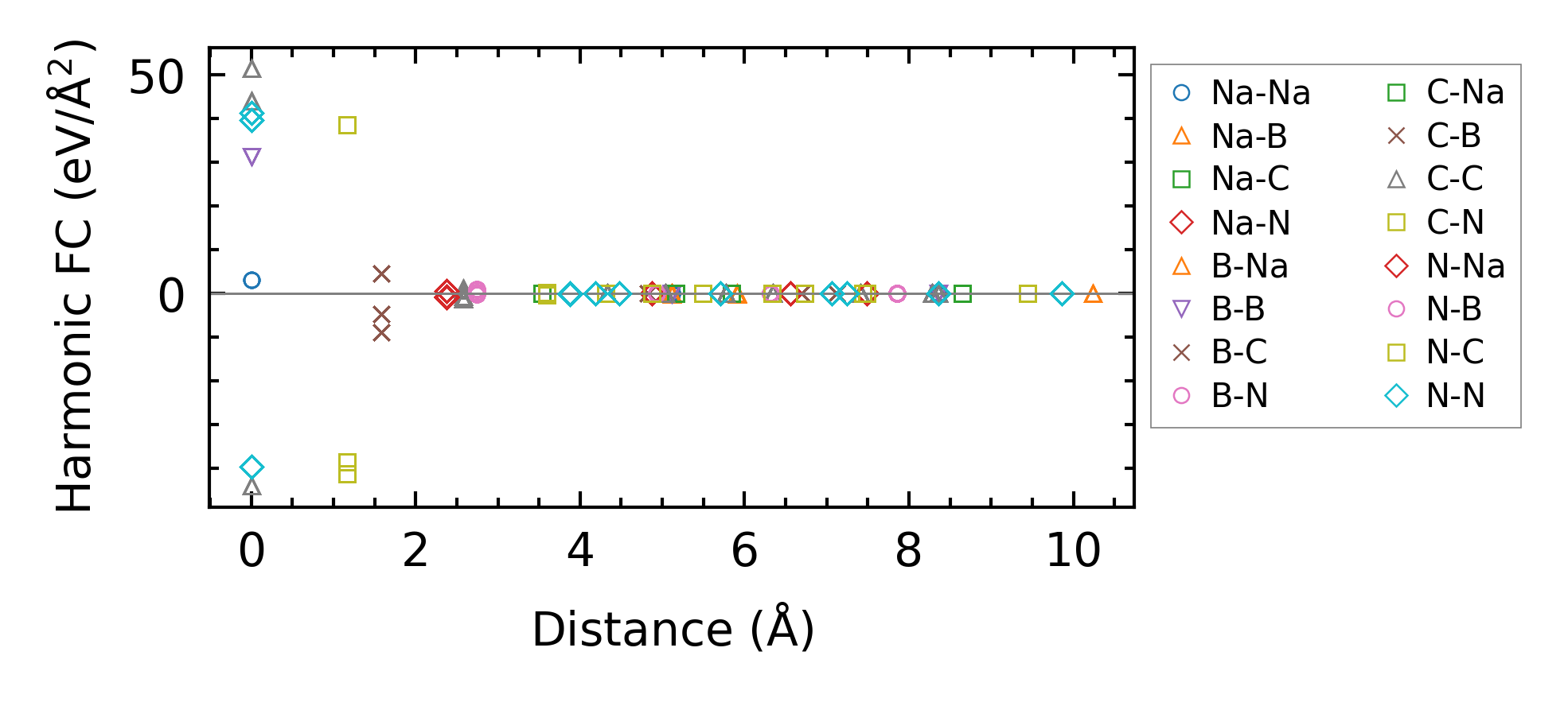 (a) Force constants w.r.t atomic distance