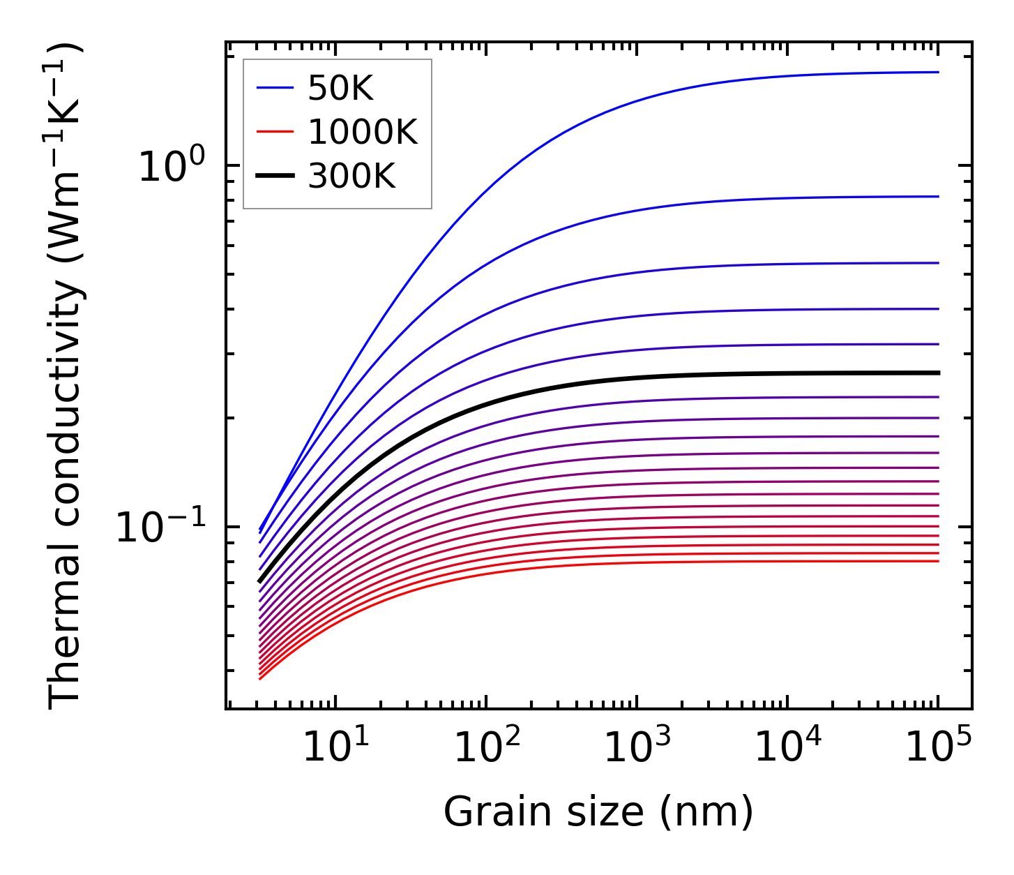 (b) Peierls lattice thermal conductivity w.r.t grain size