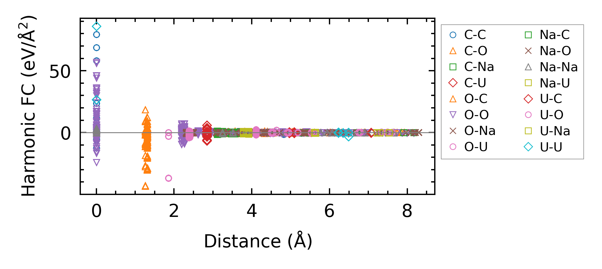 (a) Force constants w.r.t atomic distance