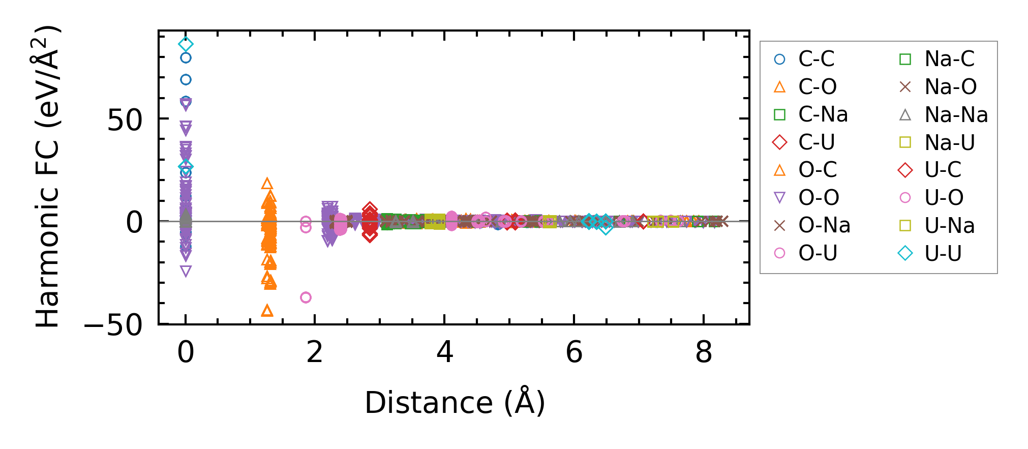 (a) Force constants w.r.t atomic distance