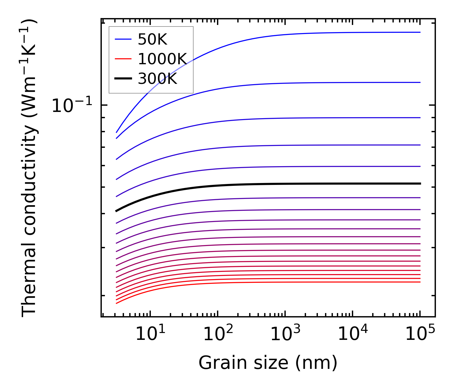 (b) Peierls lattice thermal conductivity w.r.t grain size
