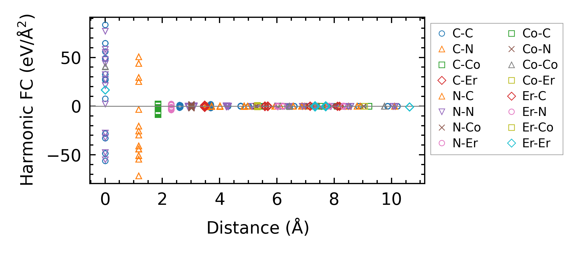 (a) Force constants w.r.t atomic distance
