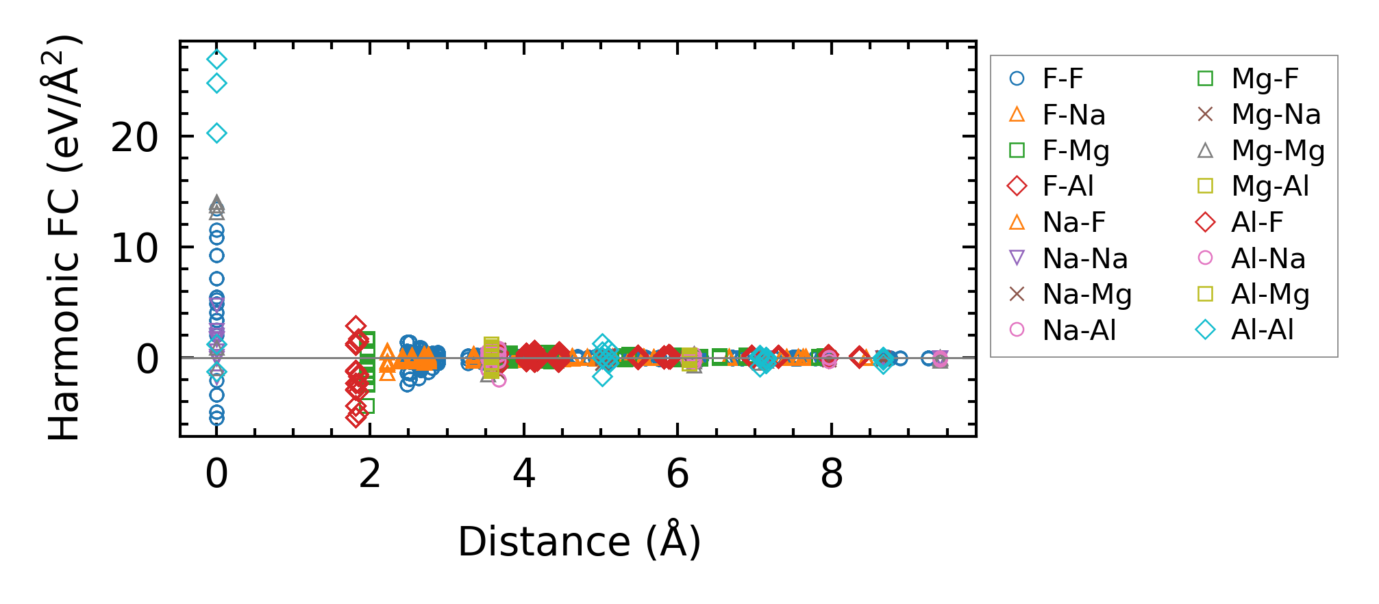 (a) Force constants w.r.t atomic distance