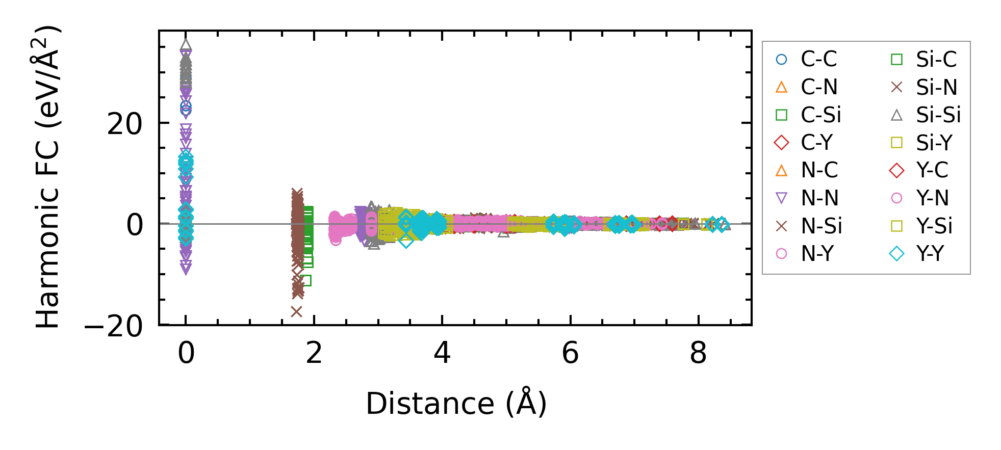 (a) Force constants w.r.t atomic distance