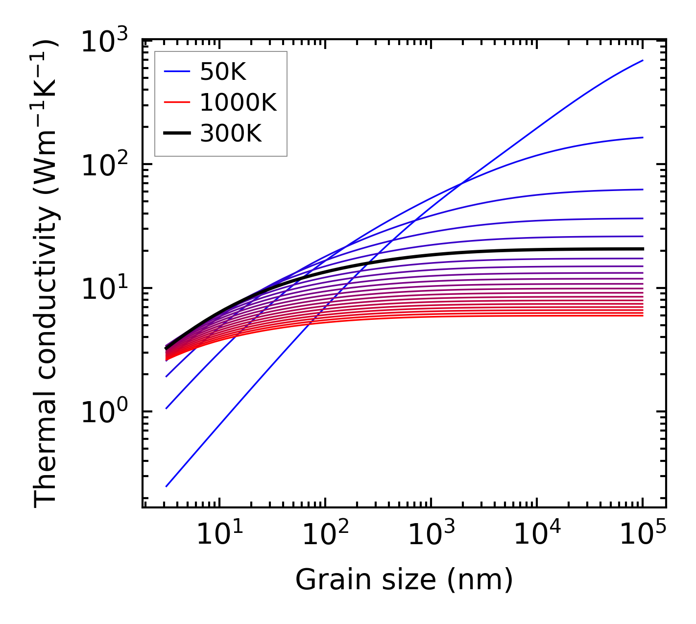 (b) Peierls lattice thermal conductivity w.r.t grain size