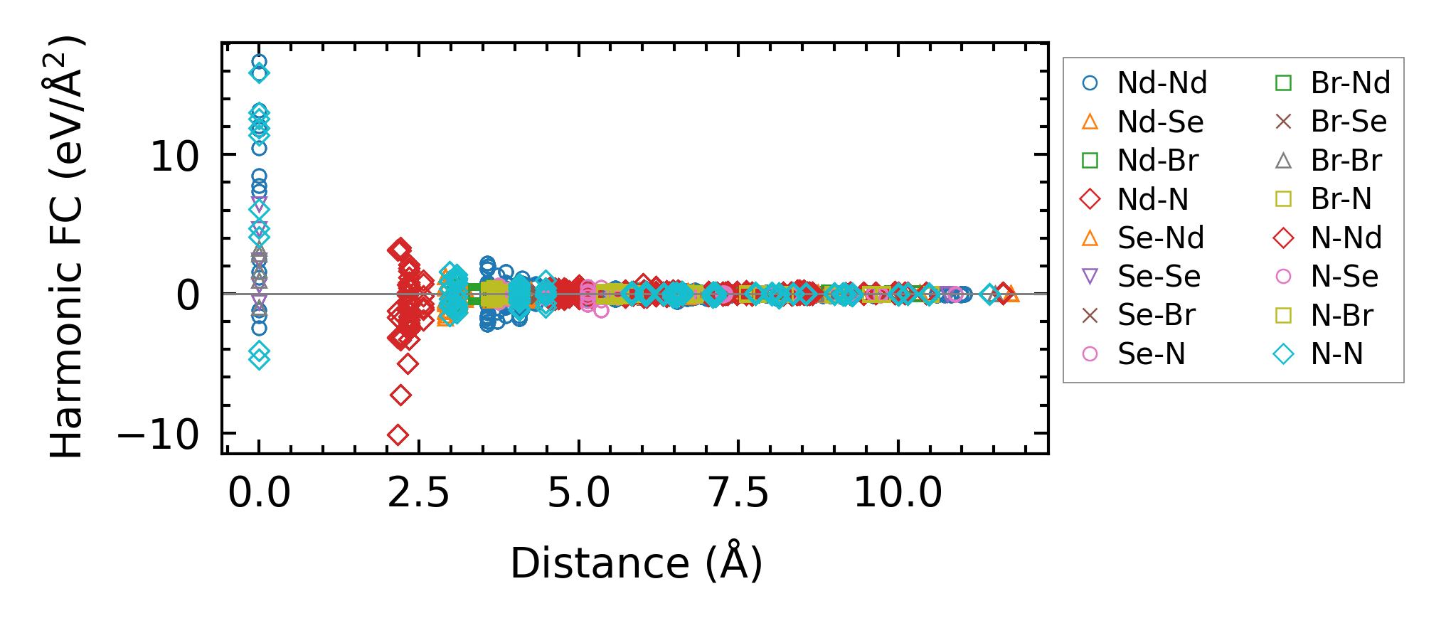 (a) Force constants w.r.t atomic distance