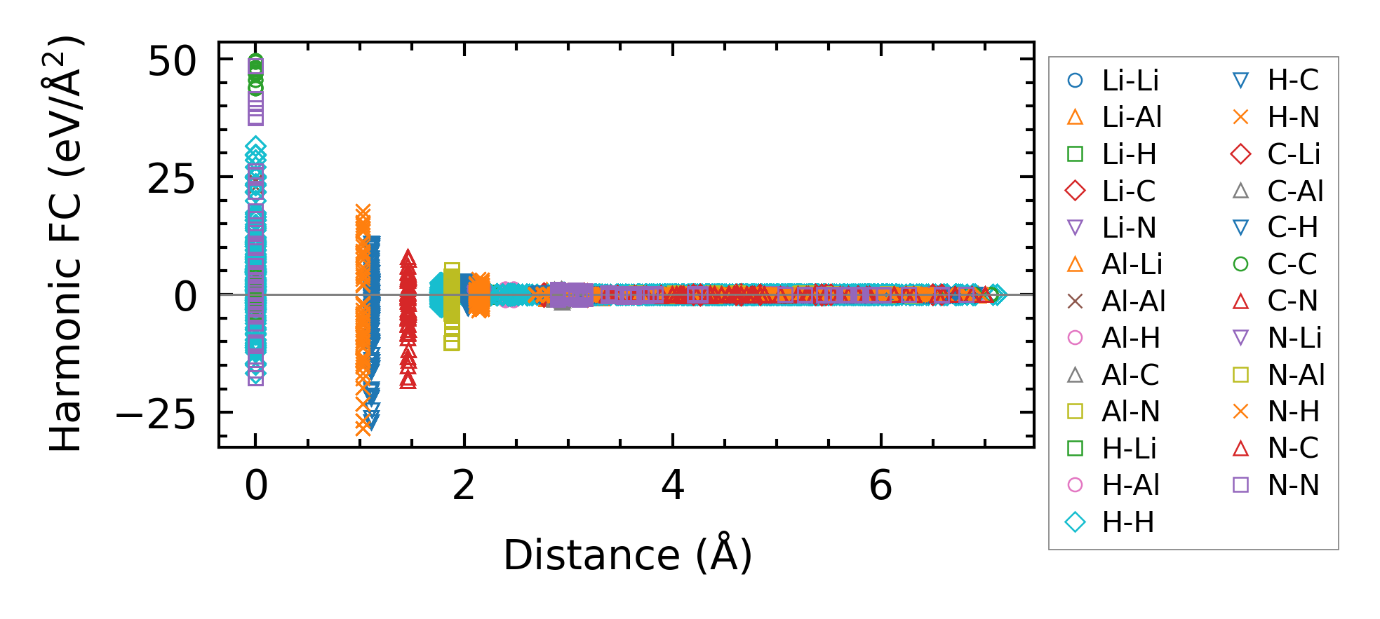 (a) Force constants w.r.t atomic distance