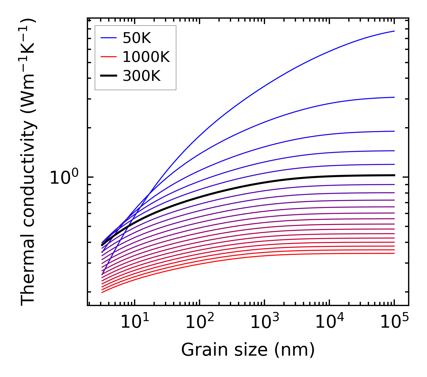 (b) Peierls lattice thermal conductivity w.r.t grain size