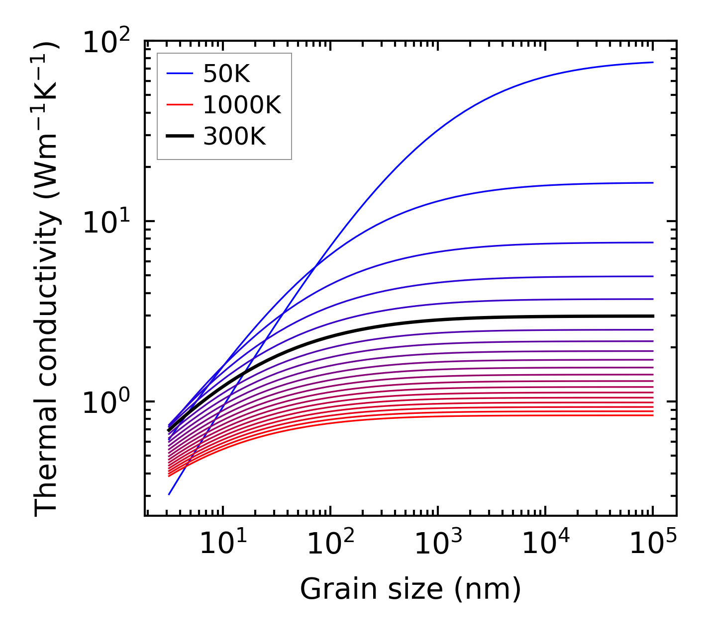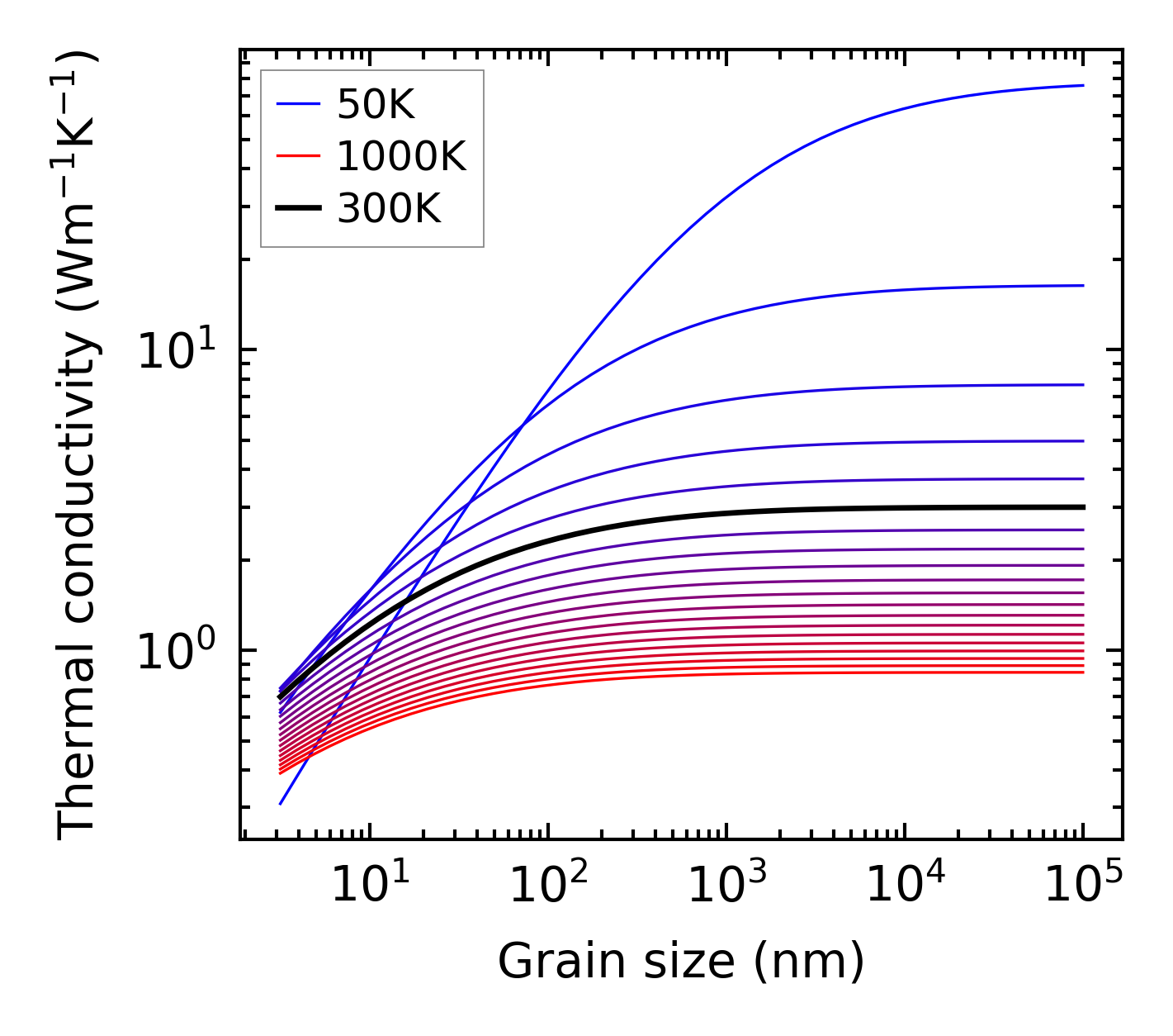 (b) Peierls lattice thermal conductivity w.r.t grain size