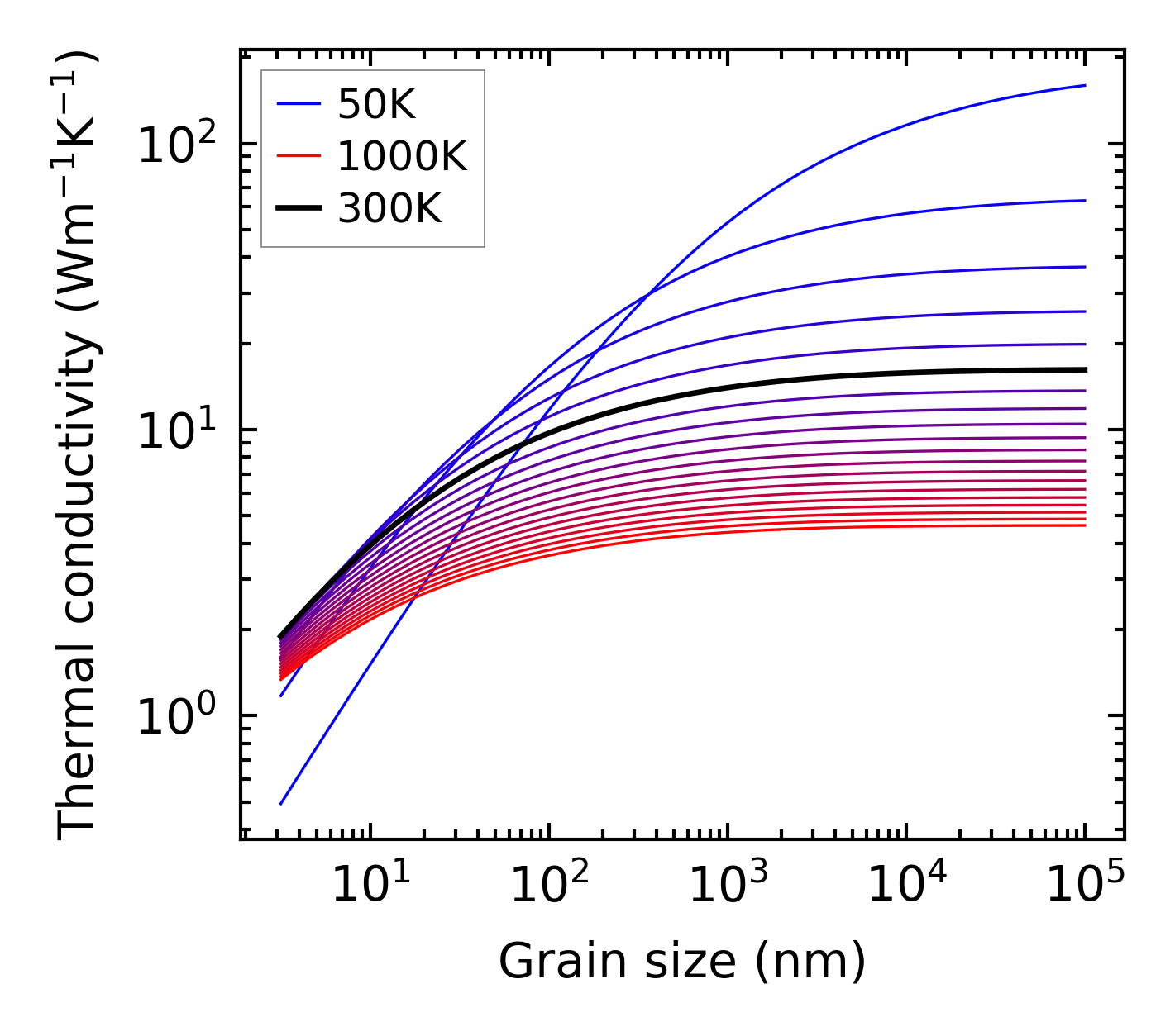 (b) Peierls lattice thermal conductivity w.r.t grain size