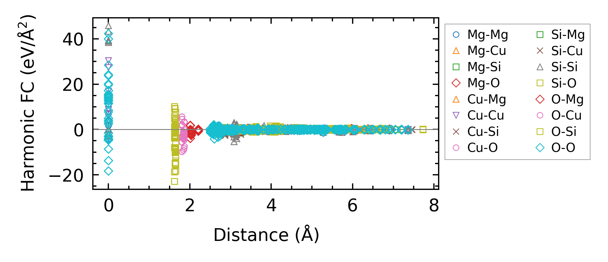 (a) Force constants w.r.t atomic distance