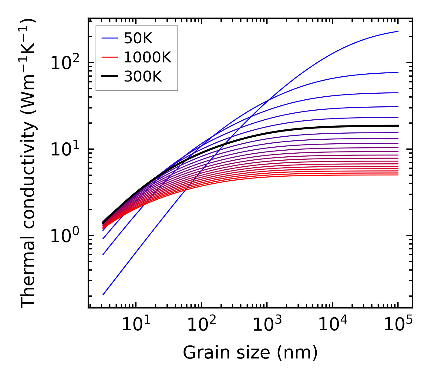 (b) Peierls lattice thermal conductivity w.r.t grain size