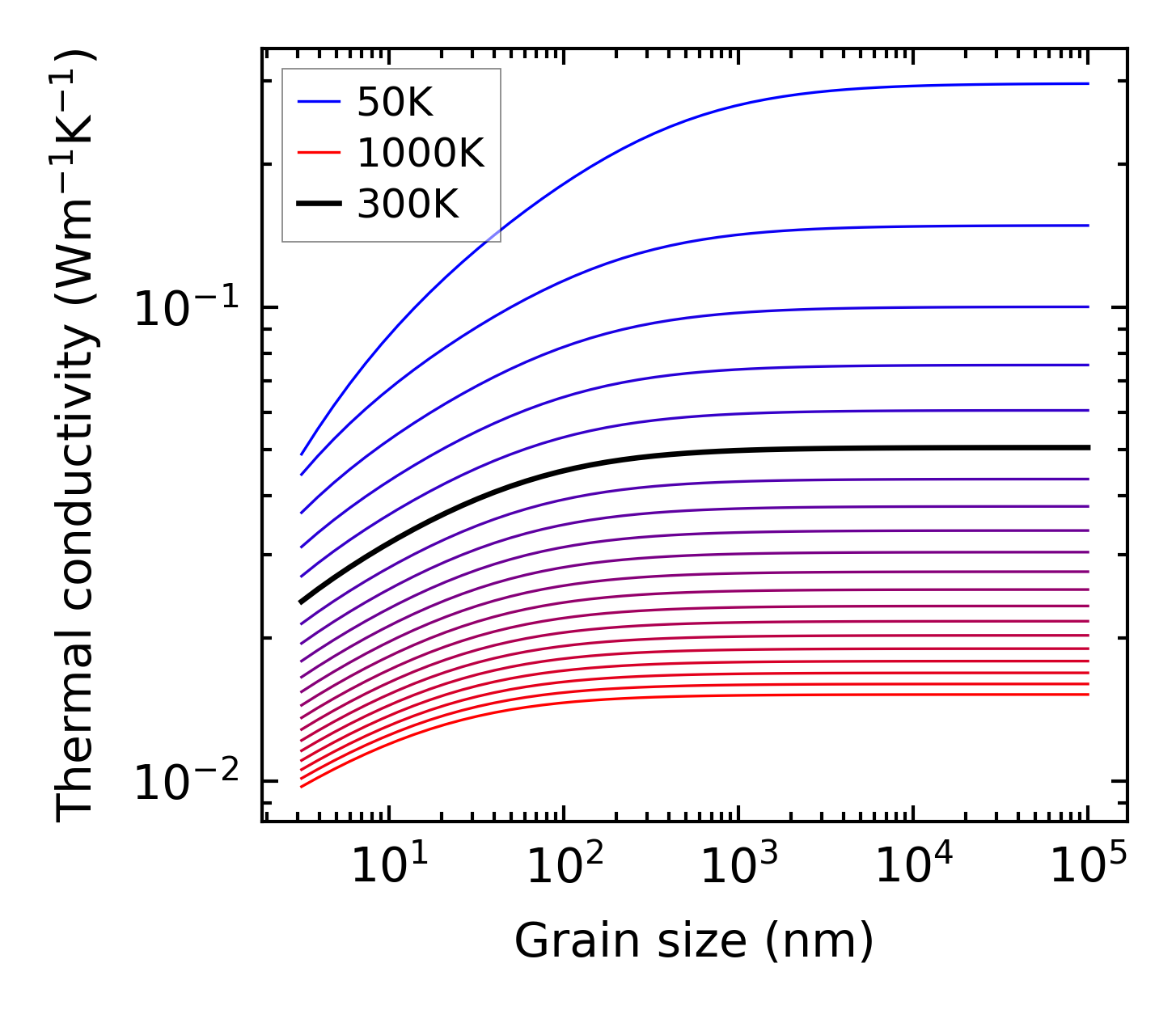 (b) Peierls lattice thermal conductivity w.r.t grain size