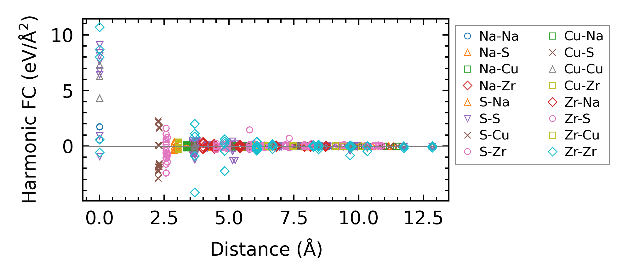 (a) Force constants w.r.t atomic distance