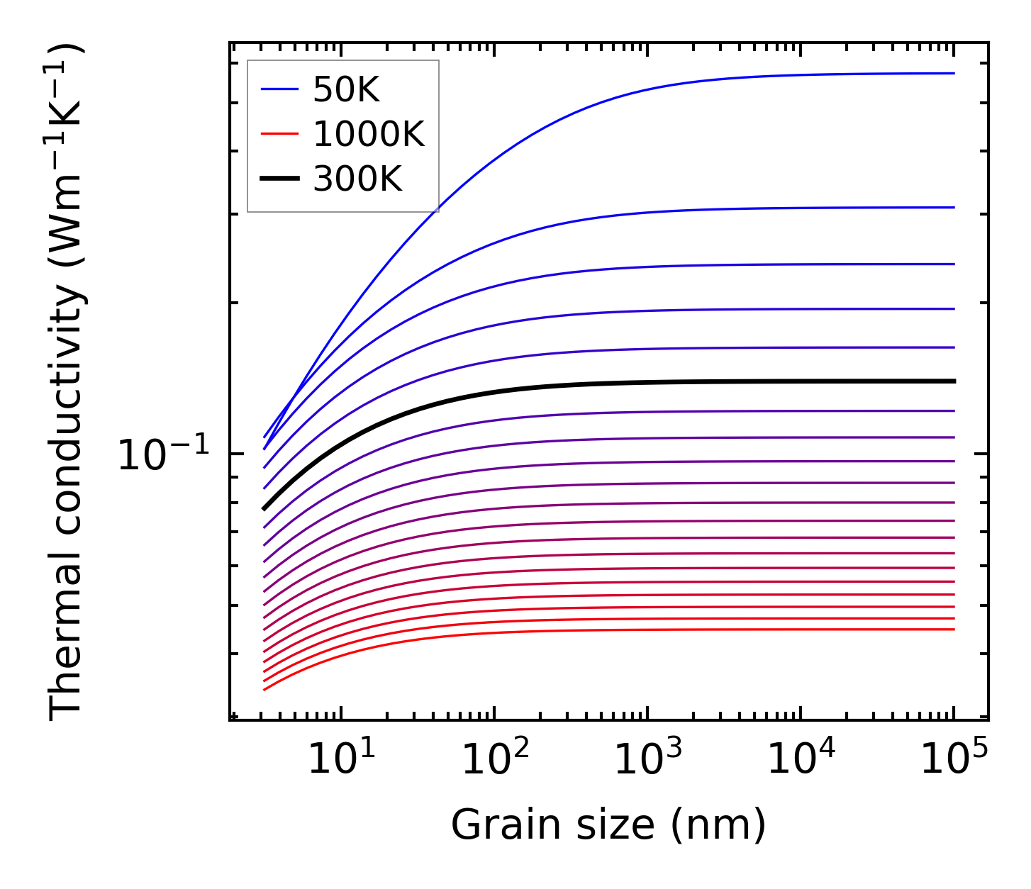 (b) Peierls lattice thermal conductivity w.r.t grain size